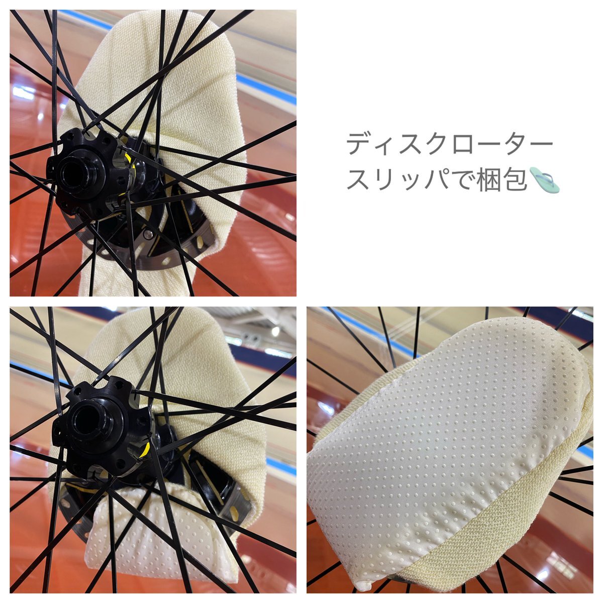 香港遠征に向けて準備中🇭🇰✈️ ディスクローターは 使わなくなったスリッパで梱包⑅⃛ 皆さんの輪行術もぜひ教えてください✨ #MAVIC #MAVICJAPAN pic.x.com/HgpsTddeXr
