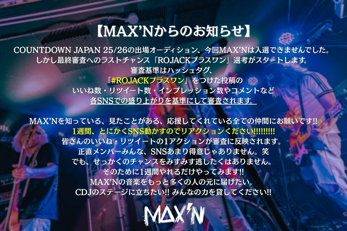 応援よろしくです! #MAX'N #ROJACKプラスワン x.com/maxn_official/…