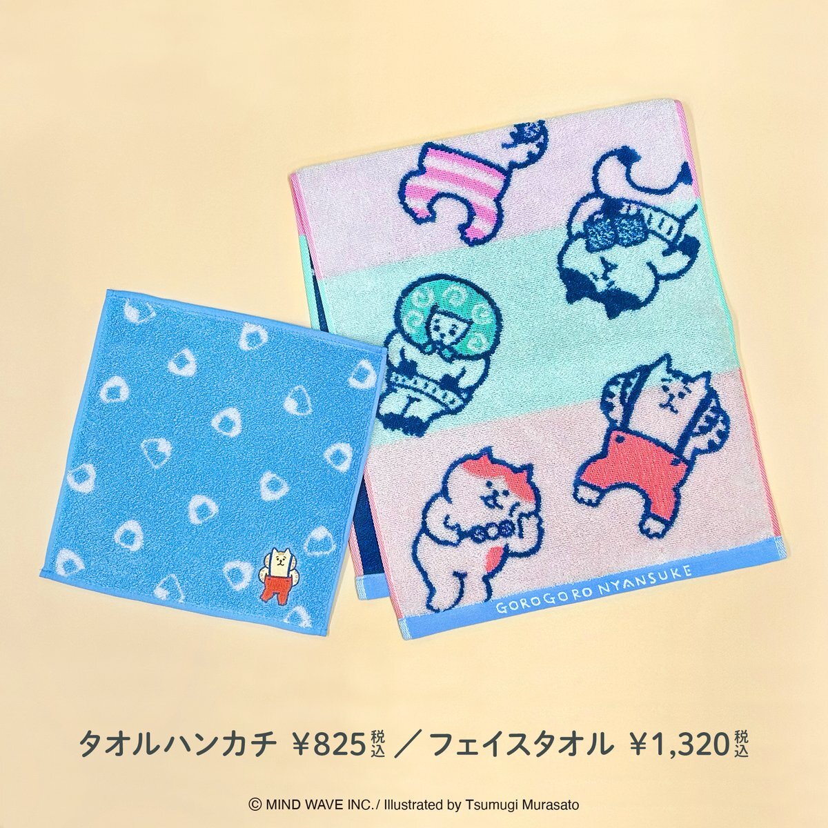 #ごろごろにゃんすけ シリーズ」 ・ポーチ ・タオルハンカチ ・フェイスタオル ・A4クリアファイル ・スクエアメモ ・スティックマーカー #mindwave #マインドウェイブ pic.x.com/7RYowUQ9JA