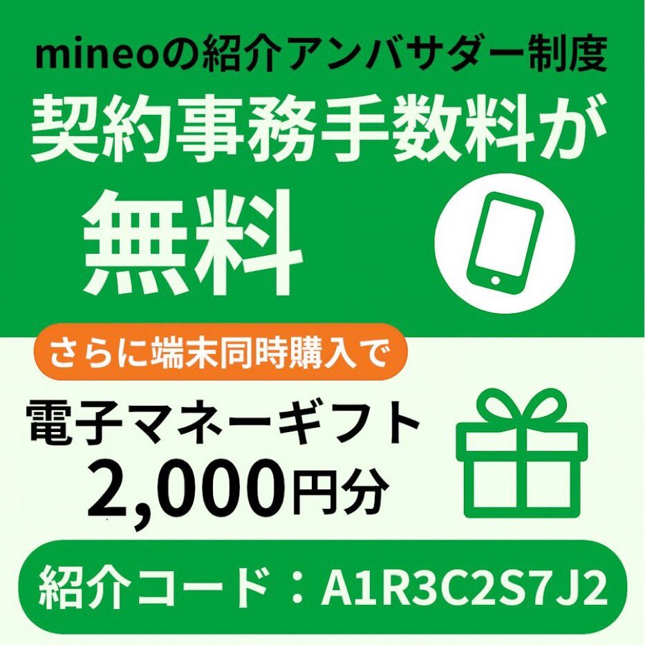 mineo契約したい人に向けて紹介コード置いておきます📱 ✅ 契約事務手数料(3,300円)無料✨ ✅ 端末同時購入で2,000円分ギフトプレゼント 紹介コード入力またはリンクから申込みで対象 紹介コード:A1R3C2S7J2 紹介リンク:mineo.jp/syokai/?jrp=sy… mineo マイネオ #mineo #マイネオ pic.x.com/uEwIFfQH3A