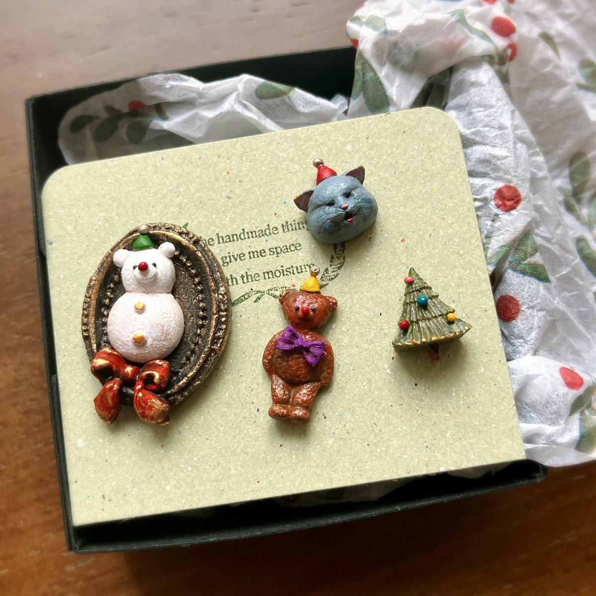 プレゼント用に、ミニチュアブローチ(マグネット式)を作りました🎄 今年も好き勝手作った作品ばかりですが、見て下さって本当にありがとうございます。 来年もお付き合い頂けたら嬉しいです🧸 良いお年を♡ #ミニチュア #ハンドメイドアクセサリー #ミニチュア作品 #miniature #Christmas pic.x.com/cestShrwVc
