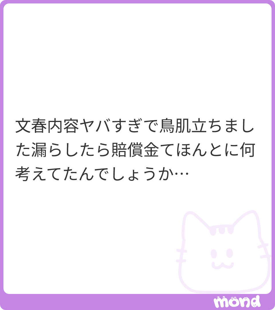 .5廃油の素行に期待してる人なんている?むしろ9割はやらかしてんだろという偏見あるわ。 #mond__JUSTFANCY_ mond.how/ja/topics/1t4a…