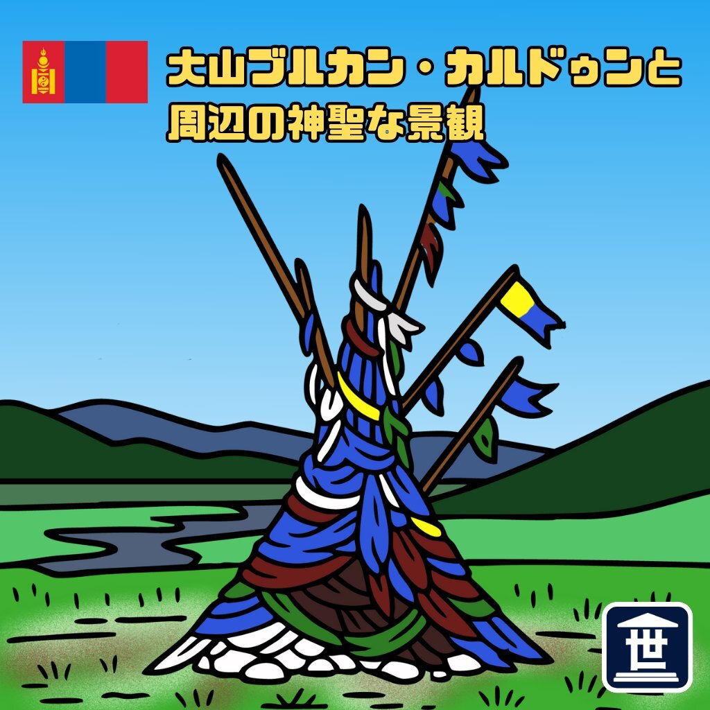 世界遺産シール「大山ブルカン・カルドゥンと周辺の神聖な景観」 モンゴル帝国を築いたチンギス・ハンの生誕地!山は古くから遊牧民であるモンゴル族によってシャーマニズムによる山岳信仰が行われてきたぞ。 #モンゴル #チンギスハン #聖地 #世界遺産 #mongolia #burkhan worldheritage-mania.com/seal-burkhan-k… pic.x.com/26POu4r7Fy