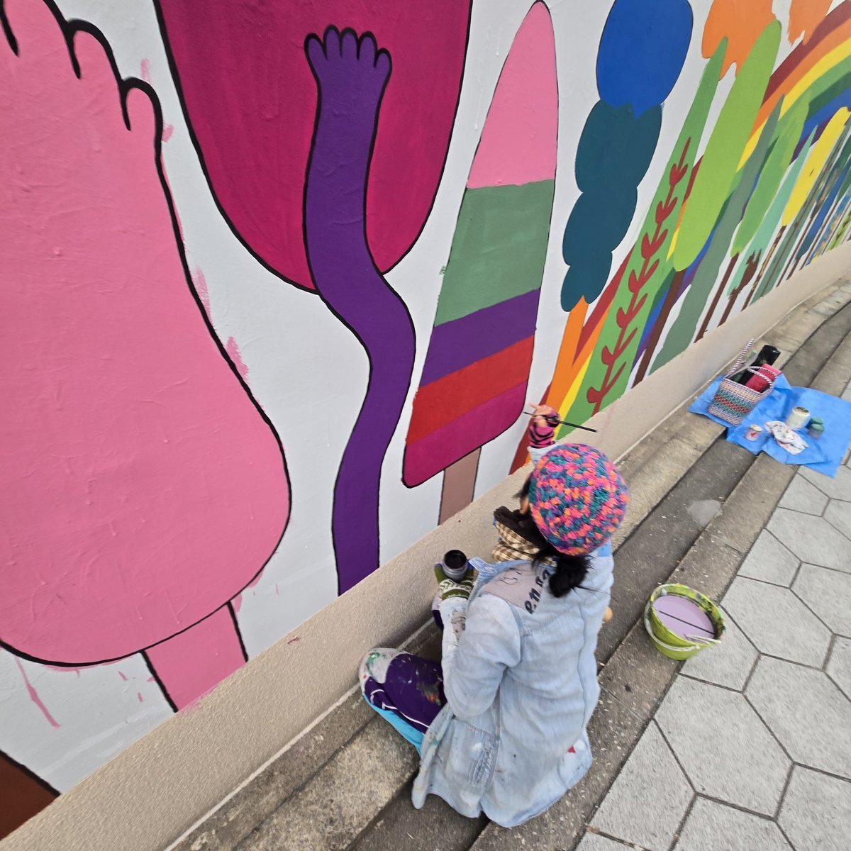 うつぼ幼稚園の壁画、今週は26日と28日に描きにいきます! 色塗りがひととおり終わったので、後は縁取りのライン描きです。 これがまた楽しいんだな~。 #咲恵の壁画 #壁画 #mural #muralartist #靱幼稚園 pic.x.com/bUjhlZpJHr