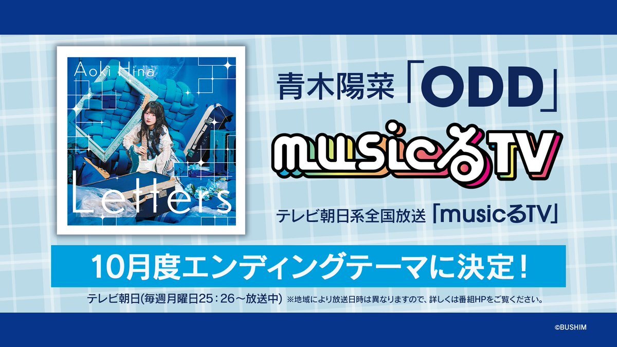 💠🔹お知らせ🔹💠 青木陽菜『ODD』が テレビ朝日系全国放送「musicるTV」 10月度エンディングテーマに決定いたしました🎉 📺テレビ朝日(毎週月曜日25:26~放送中) ※地域により放送日時は異なりますので、詳しくは番組HPをご覧ください。 music-ru.com #musicるTV pic.x.com/Wt92DbNXPB