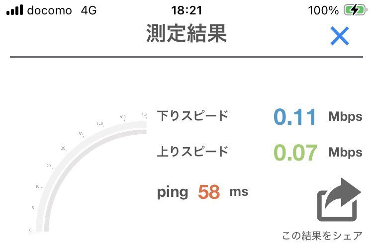 2025年12月18日 17:30頃 ロケット🚀 モバイル📱 神プラン👼 回線速度 実測値 RBB SPEEDでの計測値 110kbps 招待コード【BVRCYFJGWD】 新規申し込み時に招待コードを登録することで200ポイント付与されます。 #ロケモバ #格安SIM #MVNO #IoT #SIM pic.x.com/RImXgNO8kG