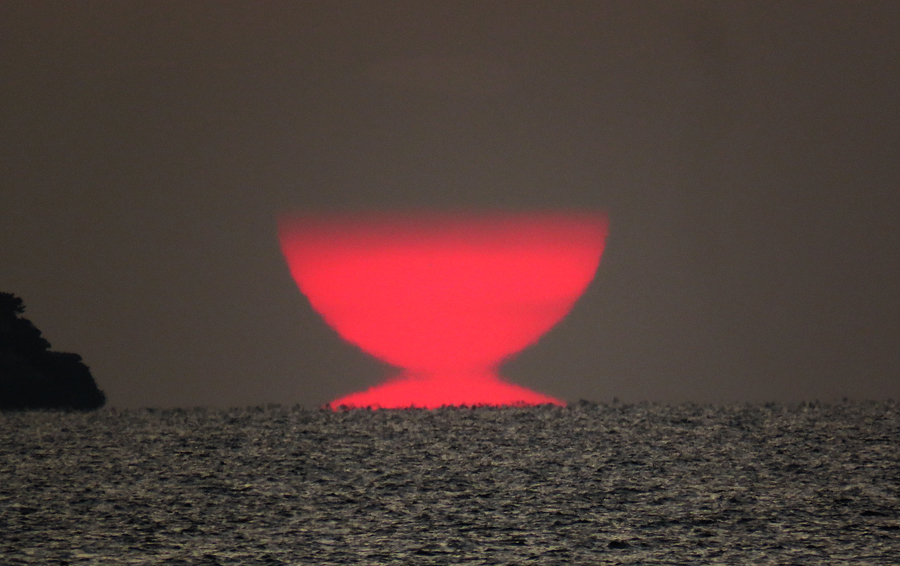 酷道378号線の八幡浜真網代-西予市三瓶間では 見渡す限りの水平線上の状態では無く対岸の九州が低空にかかるのと地形で 一つの場所で #だるま夕日 が見える期間が短く天候にも左右されるので見られるのはなかなか難しい。・・・ #大気光学現象 #mysky pic.x.com/PcTwBEparb