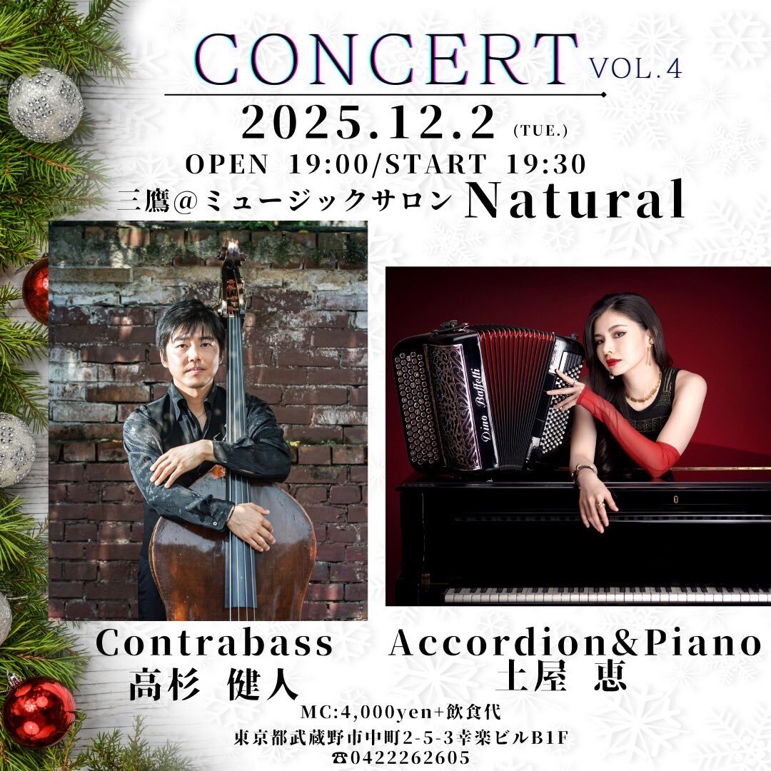 12/2はall Piazzolla Program❤️🔥 ★12/2(火)@三鷹Natural 【Concert vol.4】 open 19:00/start 19:30 高杉健人(cb.) 土屋恵(acc.pf.) 大好きなpiazzollaの素敵な曲盛り沢山❤️🔥 是非お見逃しなく✨ #piazzolla #live #Mitaka #natural #music pic.x.com/sOXewVSWiP