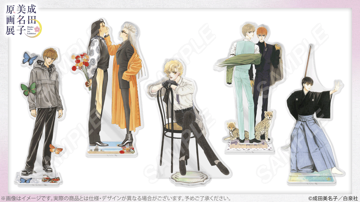 🌸#成田美名子原画展 グッズ紹介 それぞれの主人公たちの印象的なイラストを使用した、3㎜厚のアクリルスタンド。 『#エイリアン通り』『#CIPHER』『#ALEXANDRITE』『#NATURAL』『#花よりも花の如く』の全5種。《サイズ(組立後):約140x80mm》 🔗chara-art.online/eventlp/narita… #成田美名子 #成田美名子展 pic.x.com/e5MEWMZ4eN