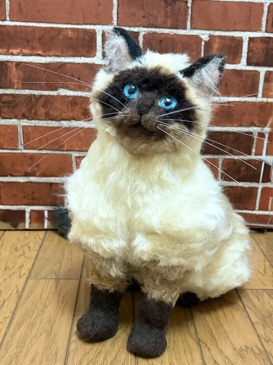 シャム猫の長毛種バリニーズを羊毛フェルトで製作しました # #羊毛フェルト #ニードルフェルト #ハンドメイド #needle #needlework #needlefelting #handmade pic.x.com/qonrafbUEP