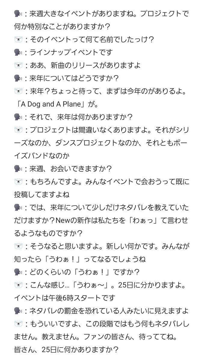 🗣️ #Newwiee There’s a big event next week. Anything special coming for the project? 🐻‍❄️ What’s the event called? 🗣️ The Line-up event. 🐻‍❄️ Oh, there will be a song release. 🗣️ What about next year? 🐻‍❄️ Next year? Hang on, we still have this year first.