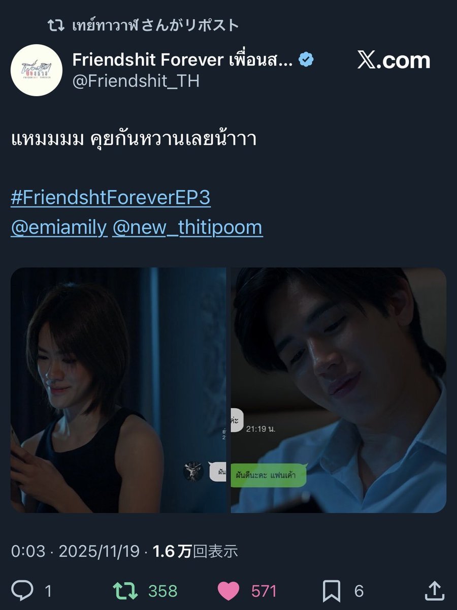 Tayさんがリポストしてくださっている この後のシーンみたかな?🤫 FRIENDSHT 4EVER EP3 #FriendshtForeverEP3 #Newwiee pic.x.com/FNdScRdttt x.com/friendshit_th/…
