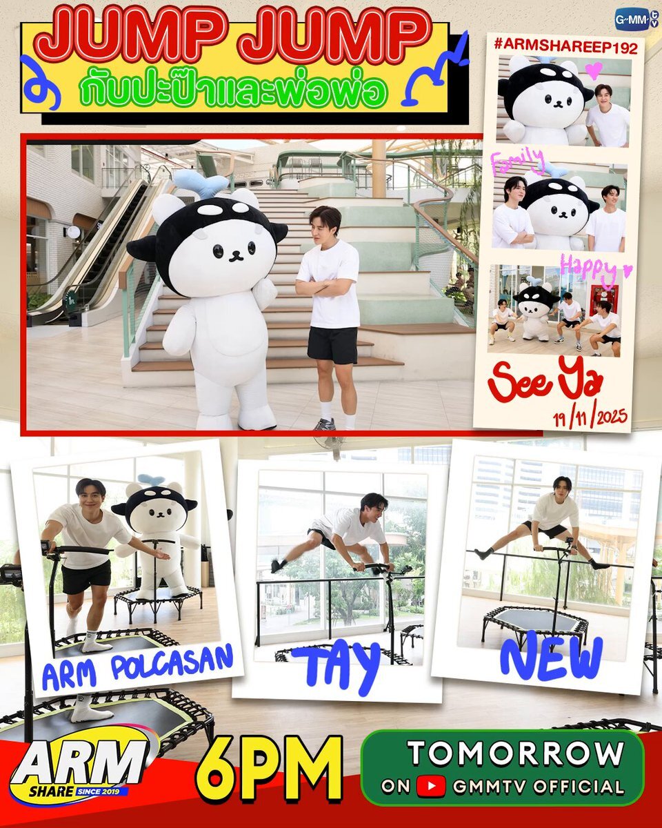 #ARMSHAREEP192 พรุ่งนี้ยัยซังชวนอาอาร์ม และปะป๊ากับพ่อพ่อ ไปออกกำลังกายโดด TRAMPOLINE เด้งดึ๋งๆ เพื่อสุขภาพ งานนี้บอกเลยแต่ละคนจัดเต็มสุดๆ ไม่มีใครยอมใครเลย!!! พรุ่งนี้ เวลา 18:00 น. ทาง Youtube : GMMTV Official #ARMSHARE #GMMTV @arm_wc @Tawan_V @new_thitipoom @polcasan_GMMTV