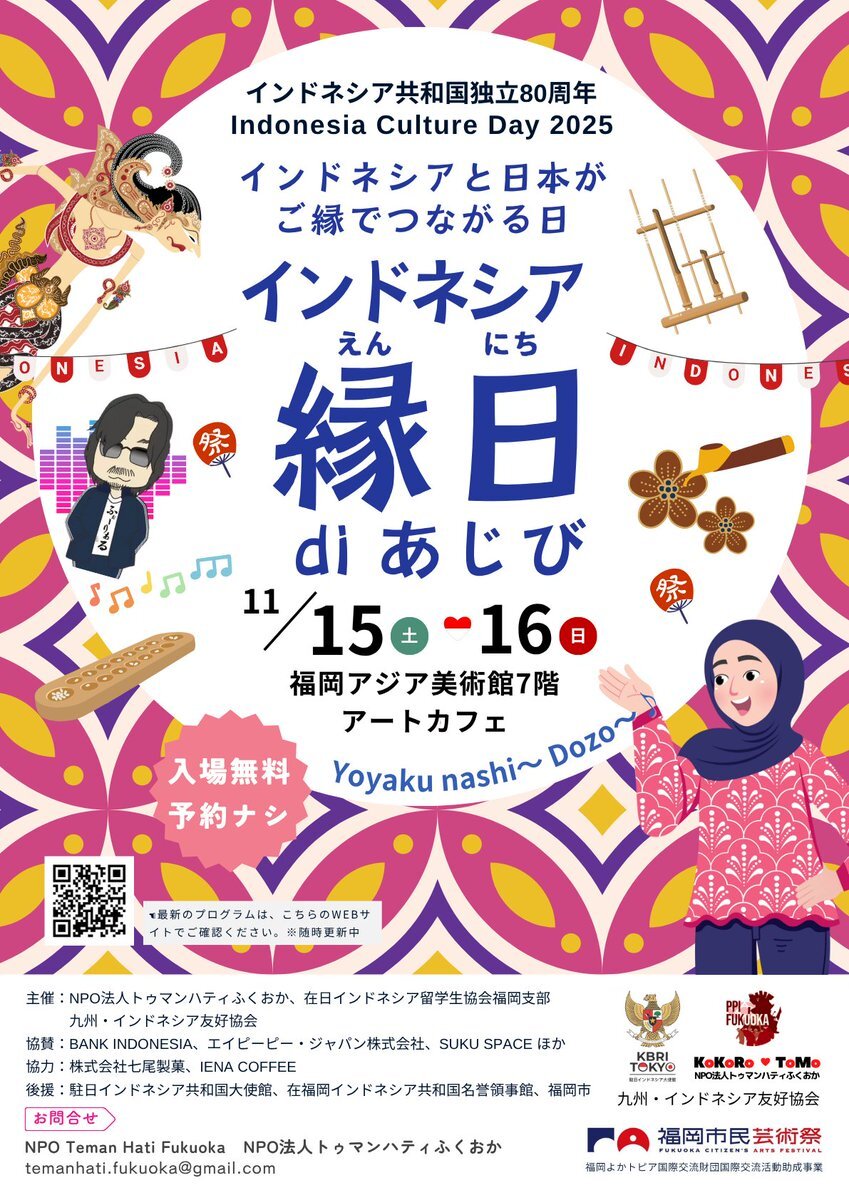 【NPO法人トゥマンハティふくおか】#インドネシアカルチャーデー2025 #インドネシア の伝統文化と今に楽しく触れる2日間 インドネシアの伝統芸能や文化について見て、触れて、体験できるイベントです。 詳細: ngofukuoka.net/indonesiacultu… #NGO #異文化体験 #FUNN pic.x.com/NPUlXc7f45