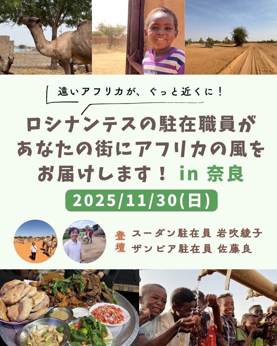 \\遠いアフリカが、ぐっと近くに!// #奈良 の街にアフリカの風をお届けします! 青々とした大自然が広がる #ザンビア、そして広大な砂漠の国 #スーダン。 まったく異なる2つの国で活動してきた駐在員が、#アフリカ の魅力をたっぷりお話します。 rocinantes.org/news/event/?no… #国際協力 #NGO #駐在 pic.x.com/sj2m0Z6G1H