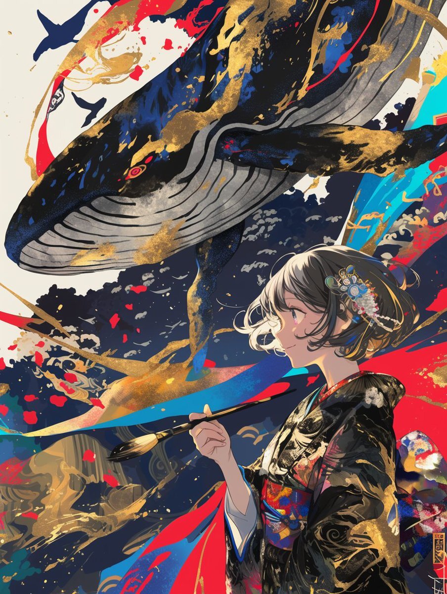 《筆先からこぼれた、星の鯨》 「願いを一粒、色に溶かした。  あとは、この鯨が連れていく。」 #AIアート #AIイラスト #デジタルイラスト #着物女子 #クジラ #AIart #AnimeArt #DigitalArt #DigitalIllustration #Whale #NightSky #SurrealArt pic.x.com/zHZr6lr6of
