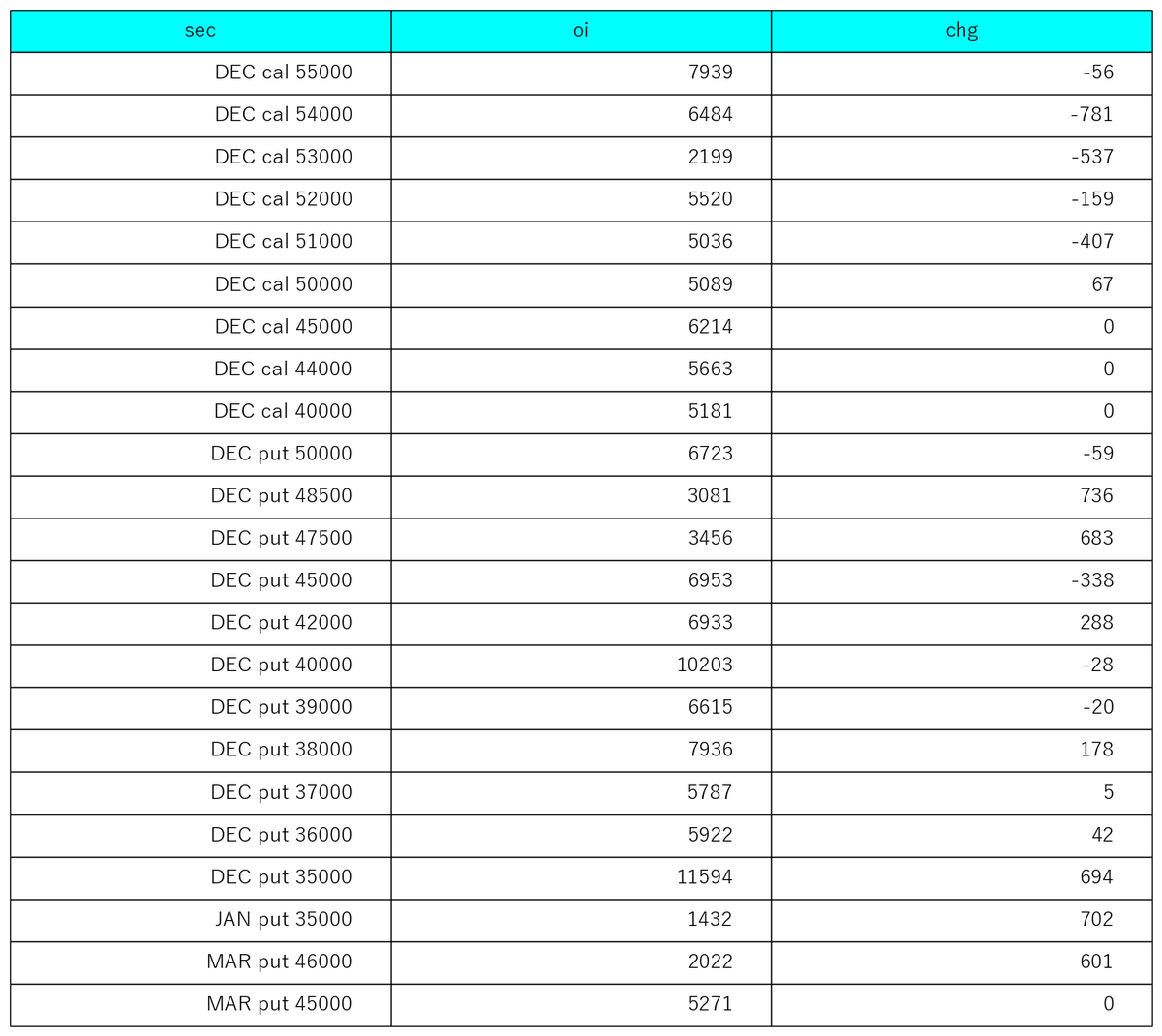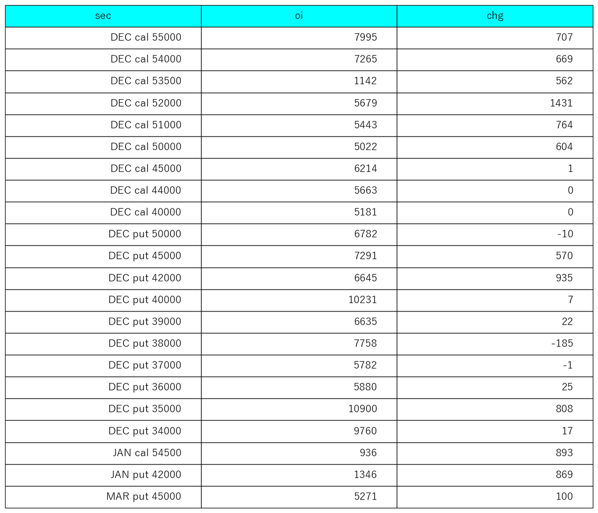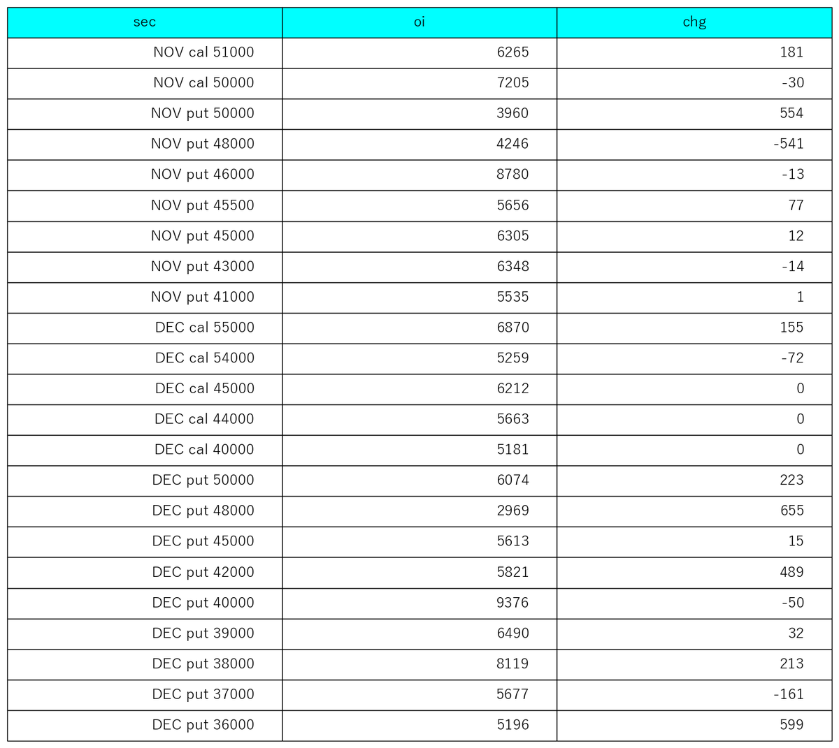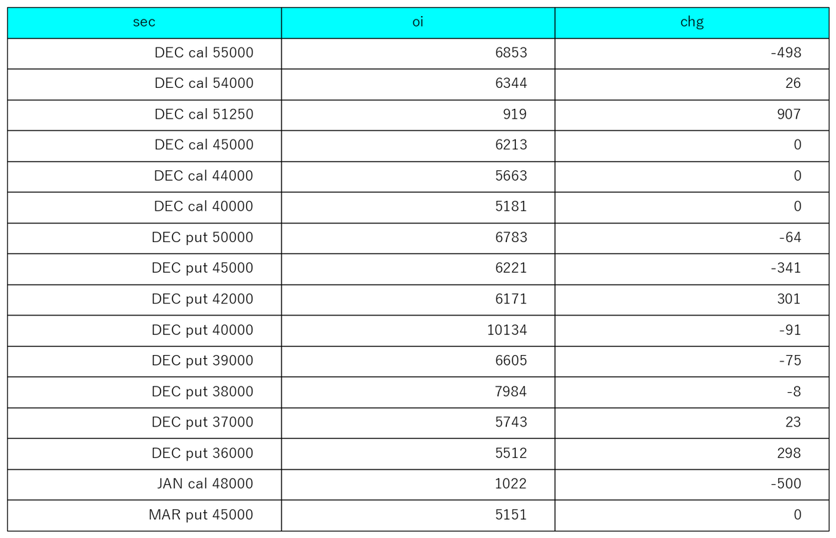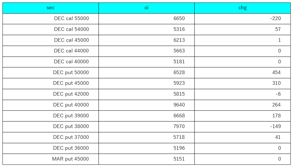 11/18 option oi significant change/strike 建玉5000以上か変化が大きいものだけ #NIKKEI #options #日経平均株価 pic.x.com/3ho6L67HZb