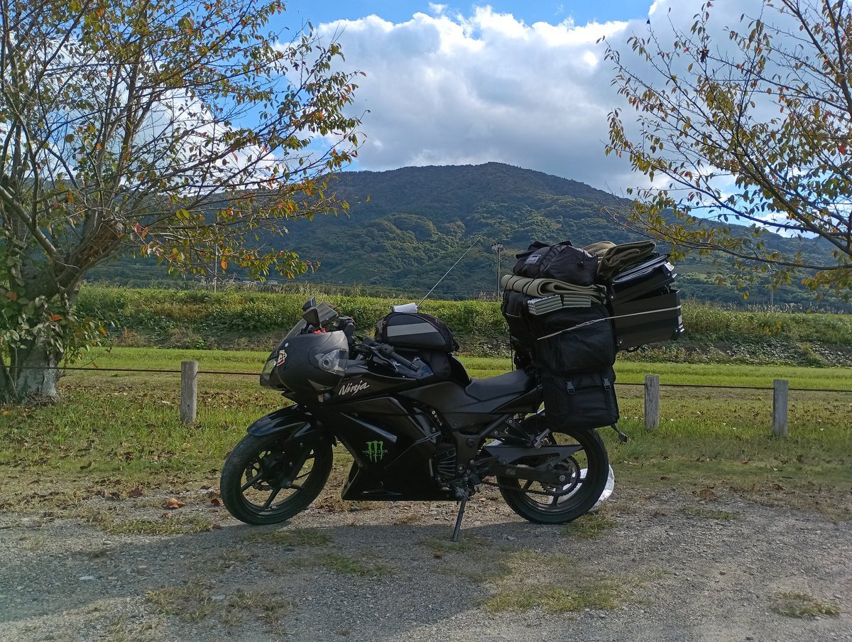 ここは河原なので、のんびりと片付けしてたら、1時を過ぎてしまいました💦 それでは、荷物満載で帰ります😅 #キャンプ好きと繋がりたい #ソロキャンプ #キャンツー #Ninja250R pic.x.com/wYUpnTDFgT
