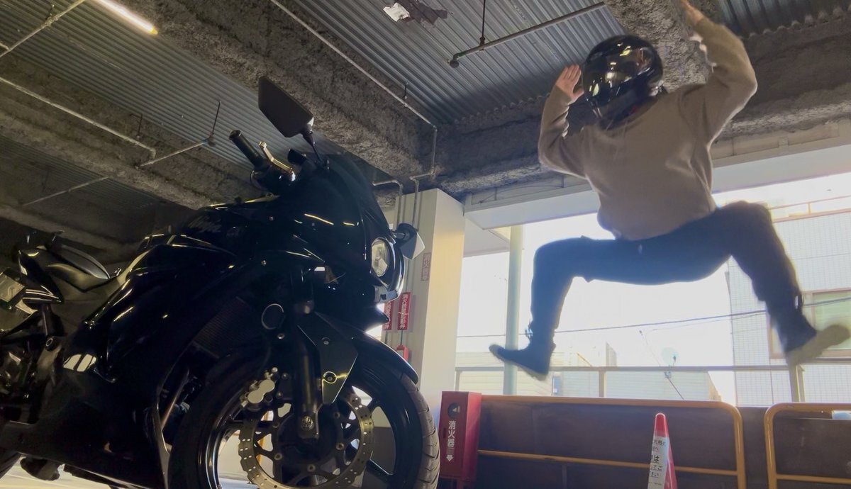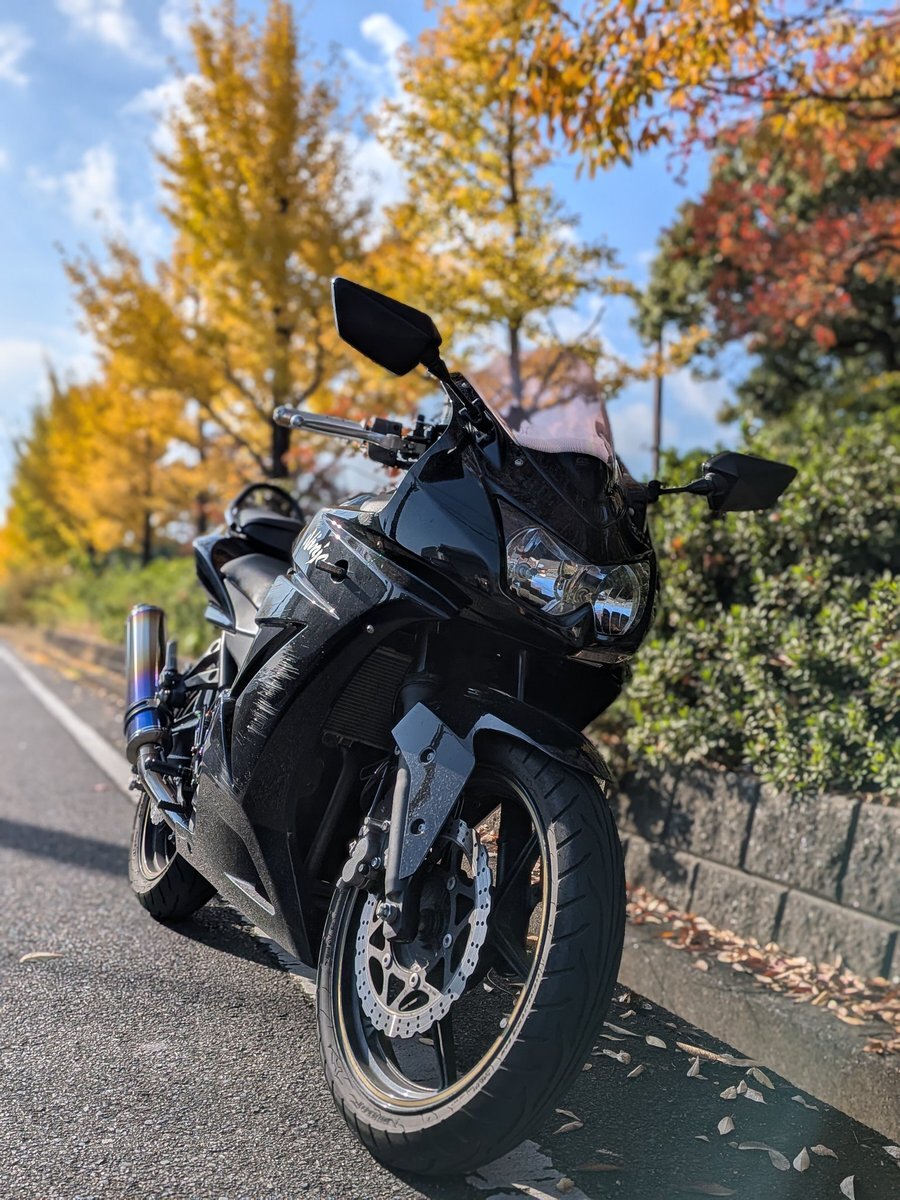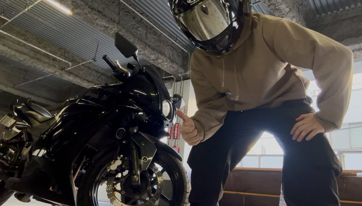 音でかくしたら聞こえるあたちの声 「タイヤのその変な緑がいけ好かねぇ」 NINJA納車したてのひとに言うことじゃないwww #SR400 #NINJA250R #insta360x3 pic.x.com/Qy7I9oApG0