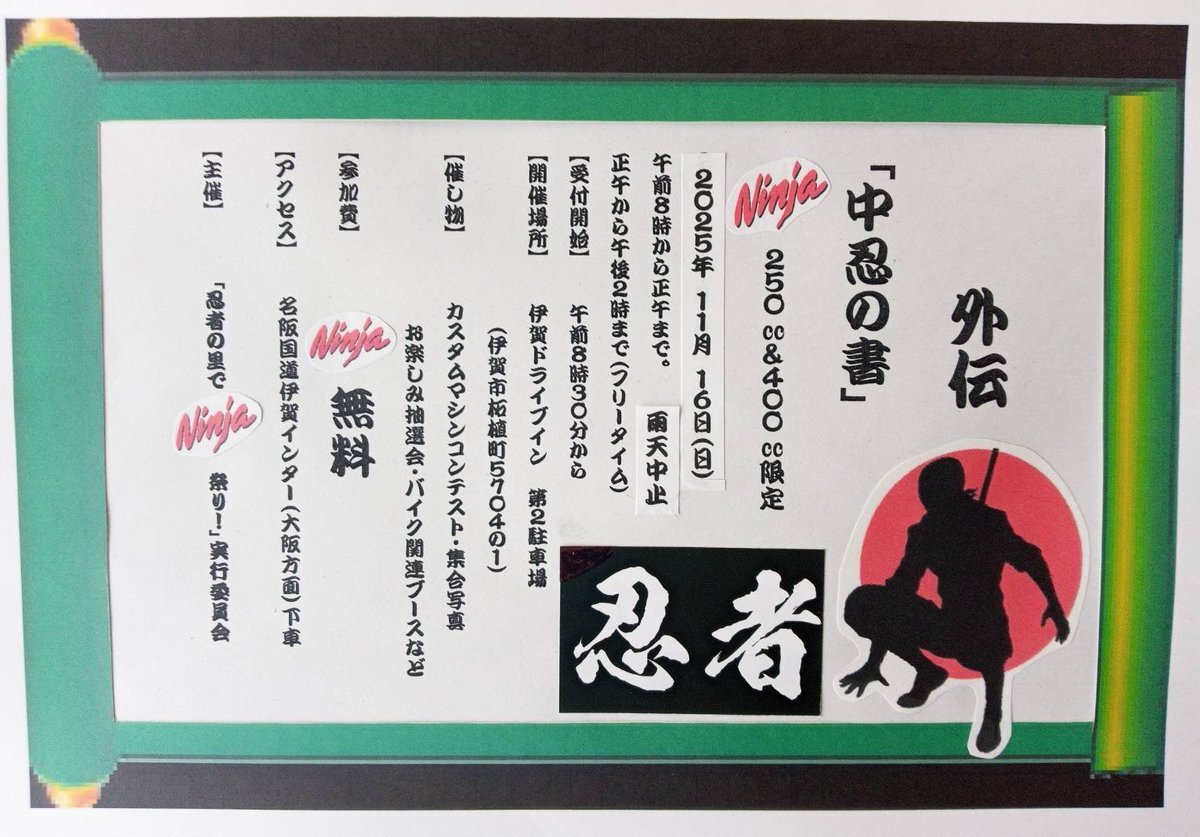 【ninja250R】忍者祭り 外伝「中忍の書」in 伊賀ドライブイン youtu.be/DOFafyUmjUU?si… @YouTubeより フォロー、いいねして頂けたら嬉しいです。 よろしくお願いします。 #kawasaki #ninja250r #カワサキ #忍者 #ニンジャ #ツーリング #バイクライフ #バイクのある人生 #バイク乗りと繋がりたい