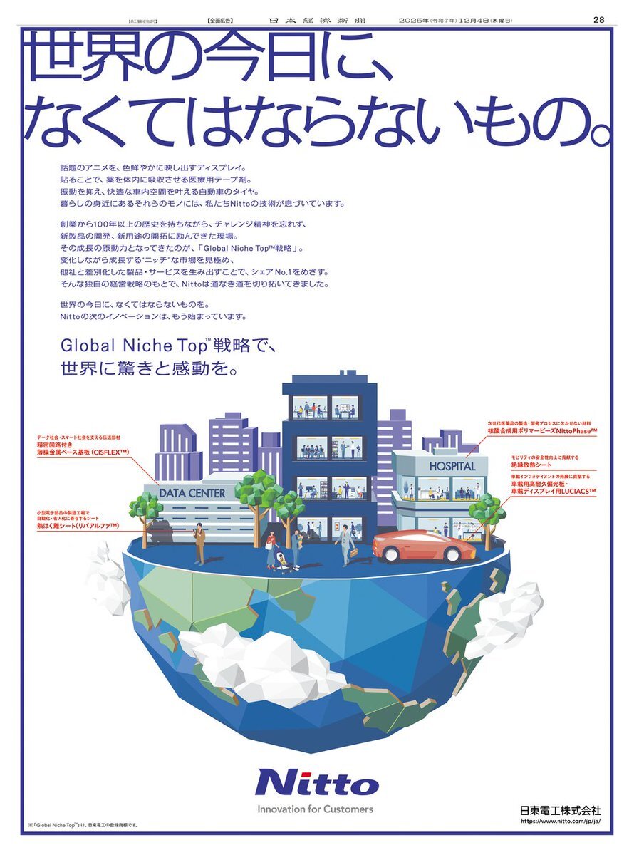 📢 12月から新シリーズスタート! 新入社員の「Discover Nitto研修」にて、配属拠点の魅力をプレゼンしました✨ 発表資料を基に、Instagram・Xにて各事業所についてご紹介していきます!お楽しみに😊 #Nitto #日東電工 #事業所紹介 pic.x.com/6QFVQMUIz6