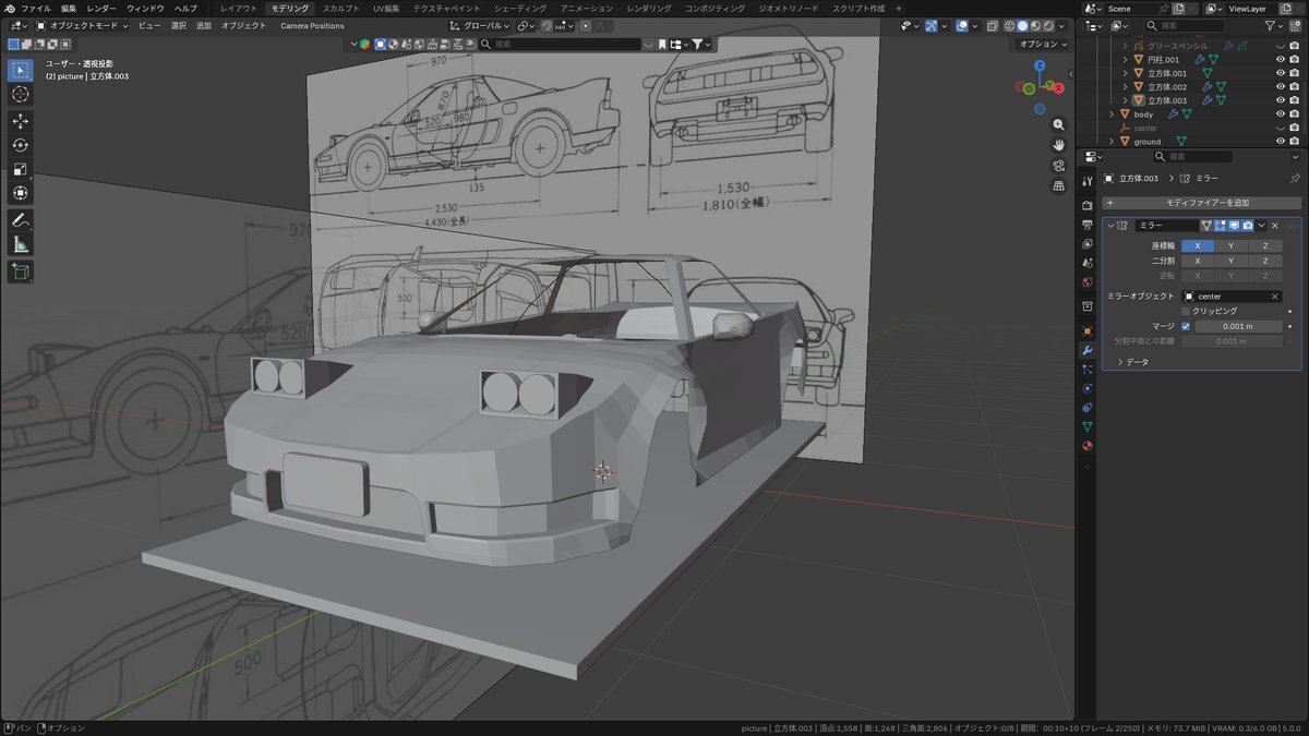 車作りー3日目ー お久しぶりです。2週間ぶりのBlender グリースペンシルで得たことから線を引き中 明日からは可能な限り毎日やります! 今日は1時間。計2.25時間 #Blender #b3d #NSX pic.x.com/JYBUcIfvfQ