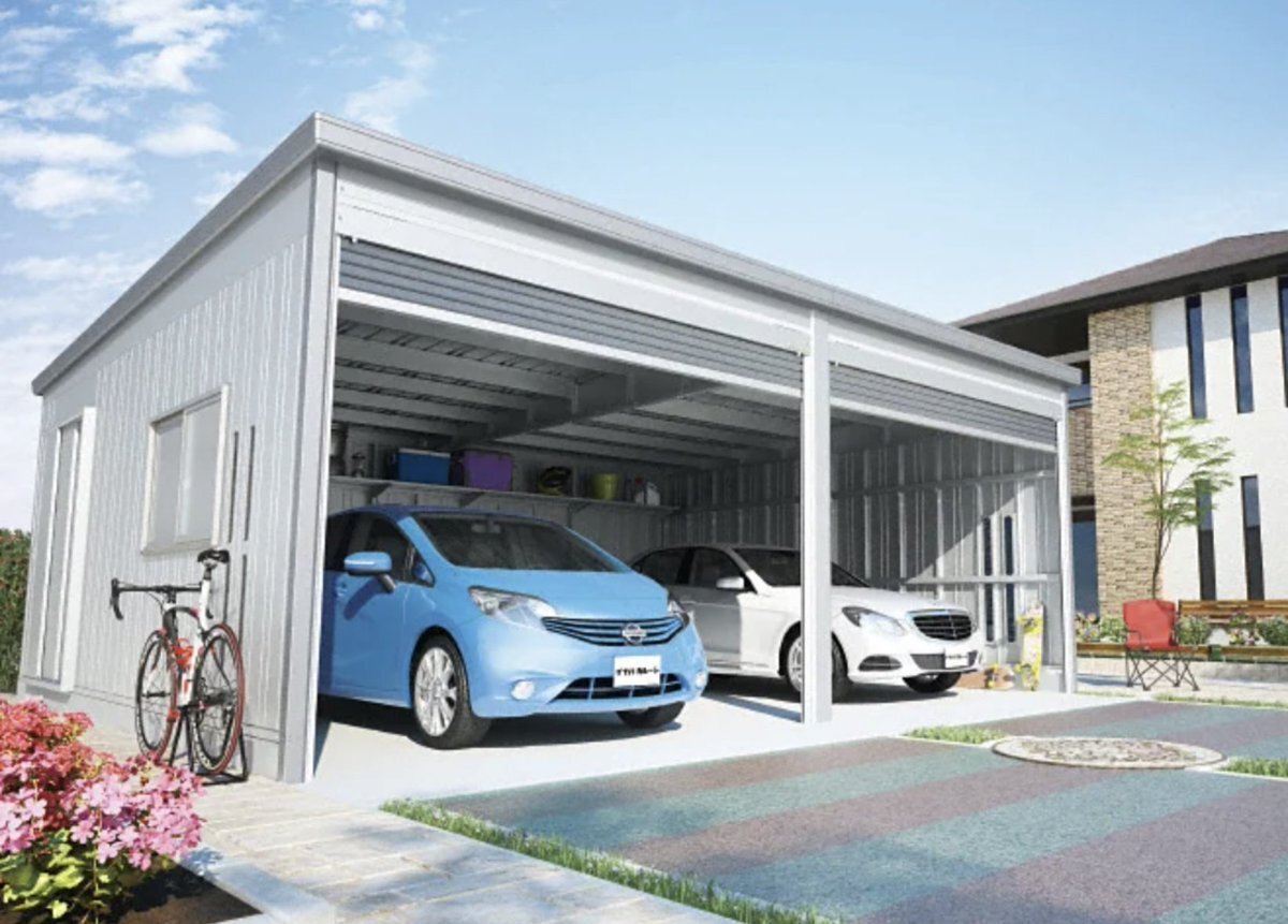 使ってない倉庫と廃業した店の建物とまだ新しいがカーポートも撤去し更地にし、2台用のガレージを建てる計画 キャストは扉開けっ放しのコンテナ保管にするならガレージは1台用でも良いが、将来ねスーパーカー増車を考慮に入れるのなら2台用で作っておくべきか。スペースが取れなければ1台用