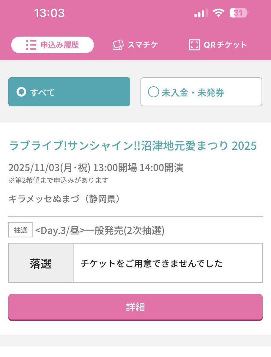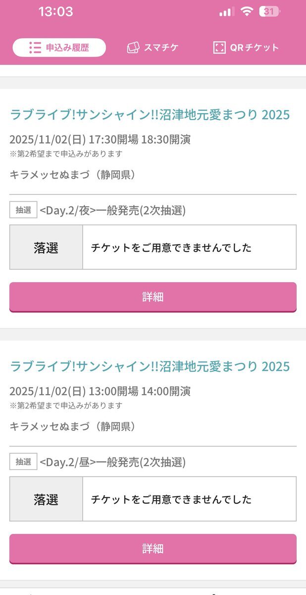 『ラブライブ!サンシャイン!! 沼津地元愛まつり2026』の先着販売、Day3夜公演のみかああああ〜!🥰😭🌊☀️ 自分はDay2両日とDay3昼公演を落選し、Day3夜公演は当選済みだけど、そっちか〜!😭 #lovelive #Aqours #沼津 #沼津市 #numazu #沼津地元愛まつり2026 #沼津地元愛物産展2026 #沼津地元愛まつり pic.x.com/PyIXNBarNG x.com/lovelive_staff…