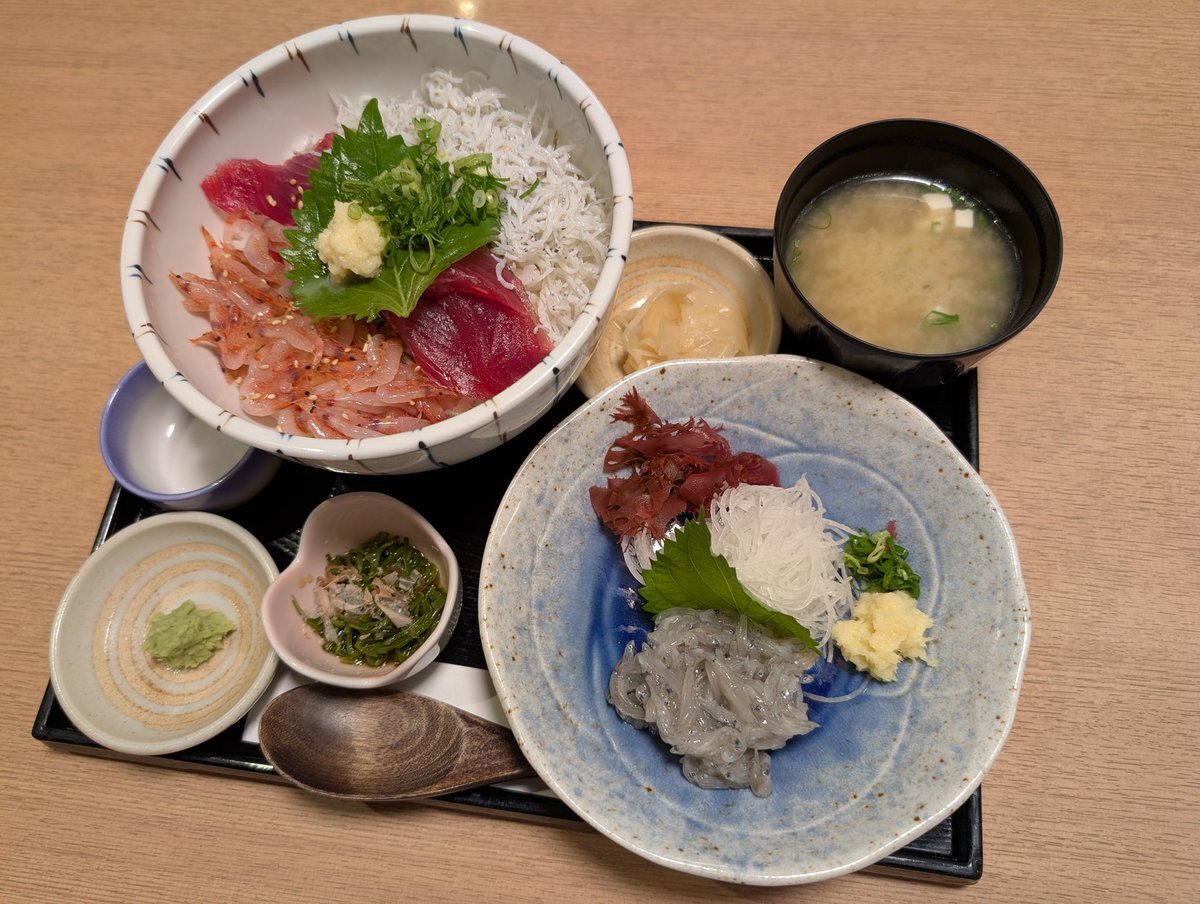 桜えびとマグロとしらすの丼🐾 A rice bowl (Donburi) topped with Sakura Shrimp, Tuna, and Whitebait😽 #numazu #seafood pic.x.com/kG3f8E2P8N