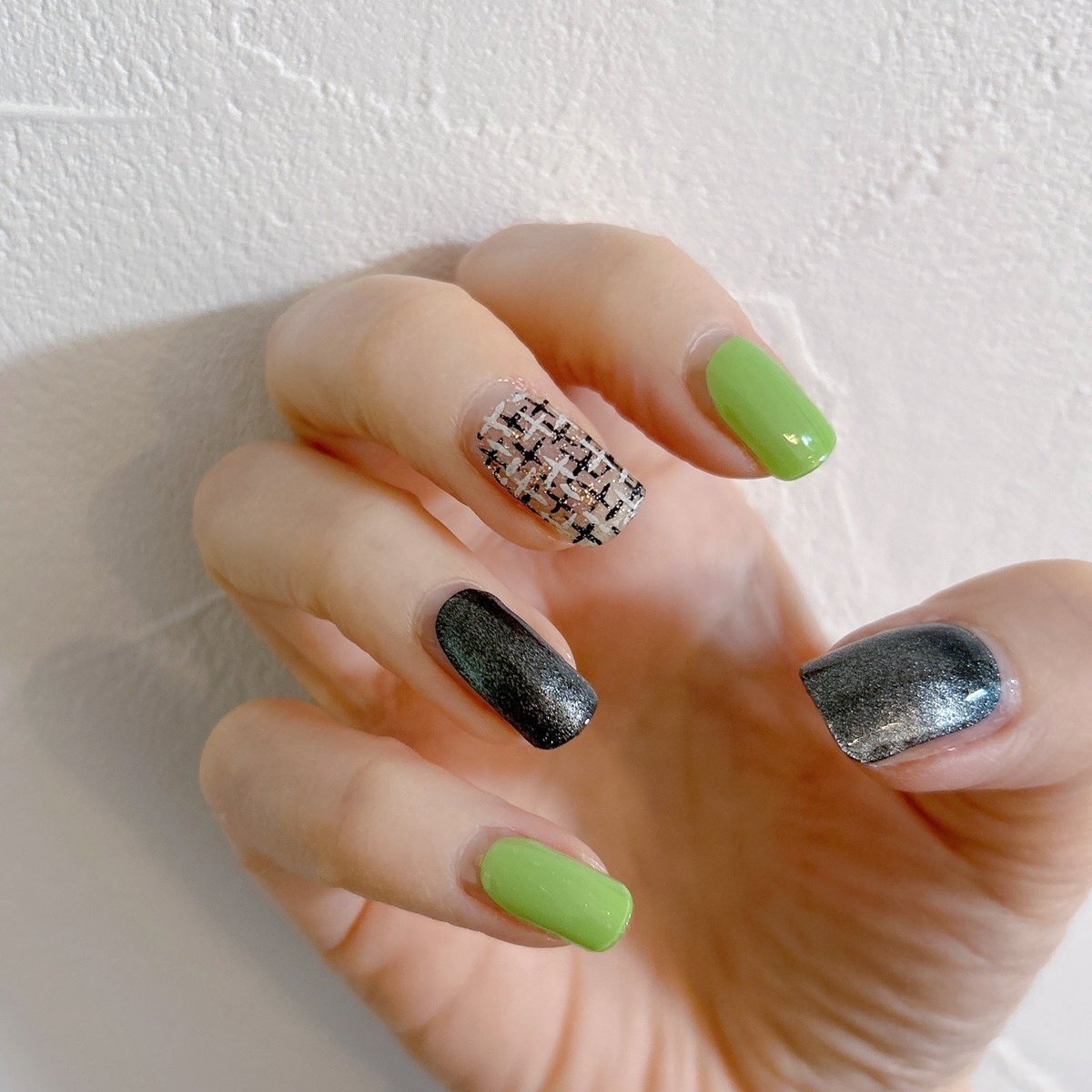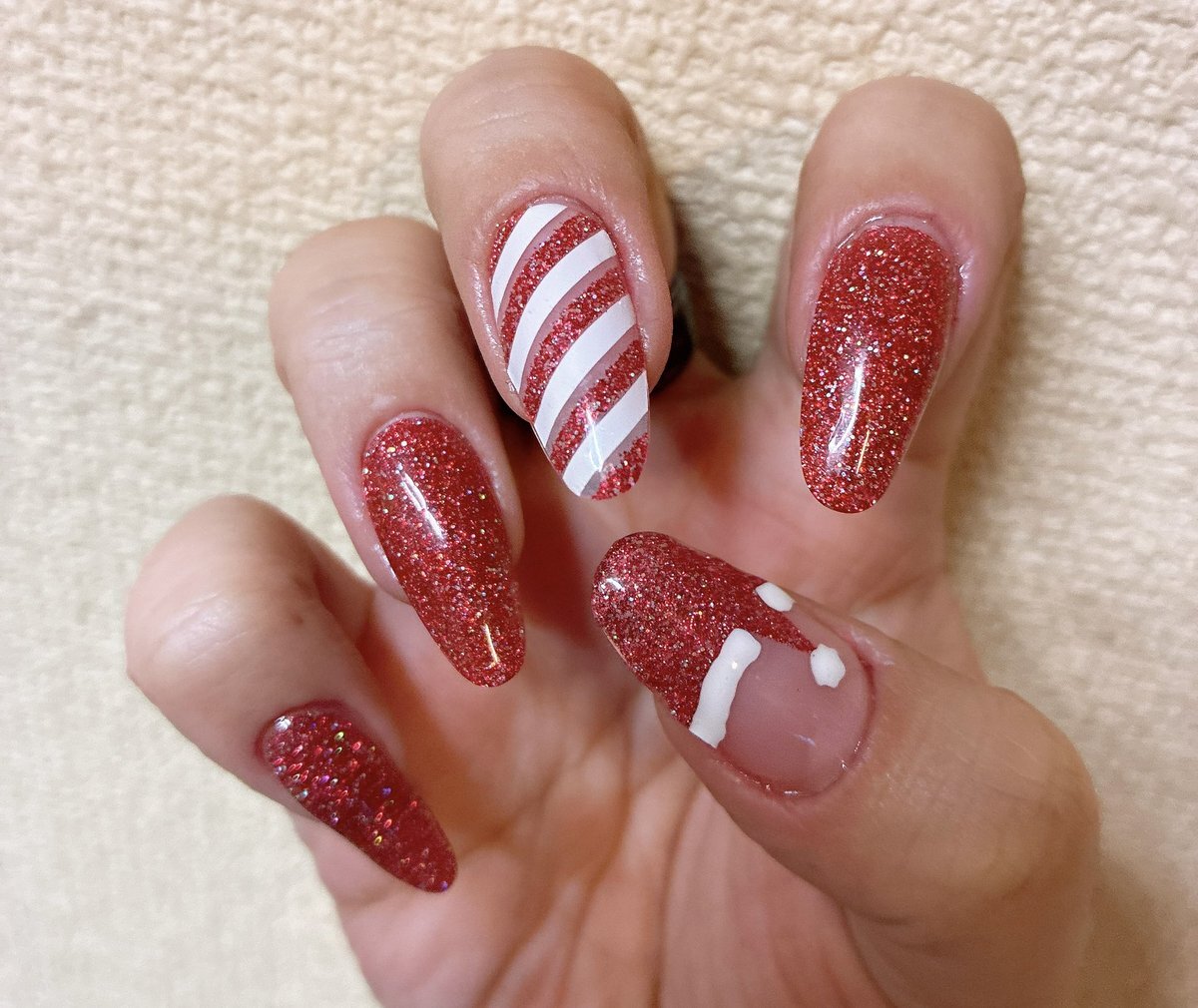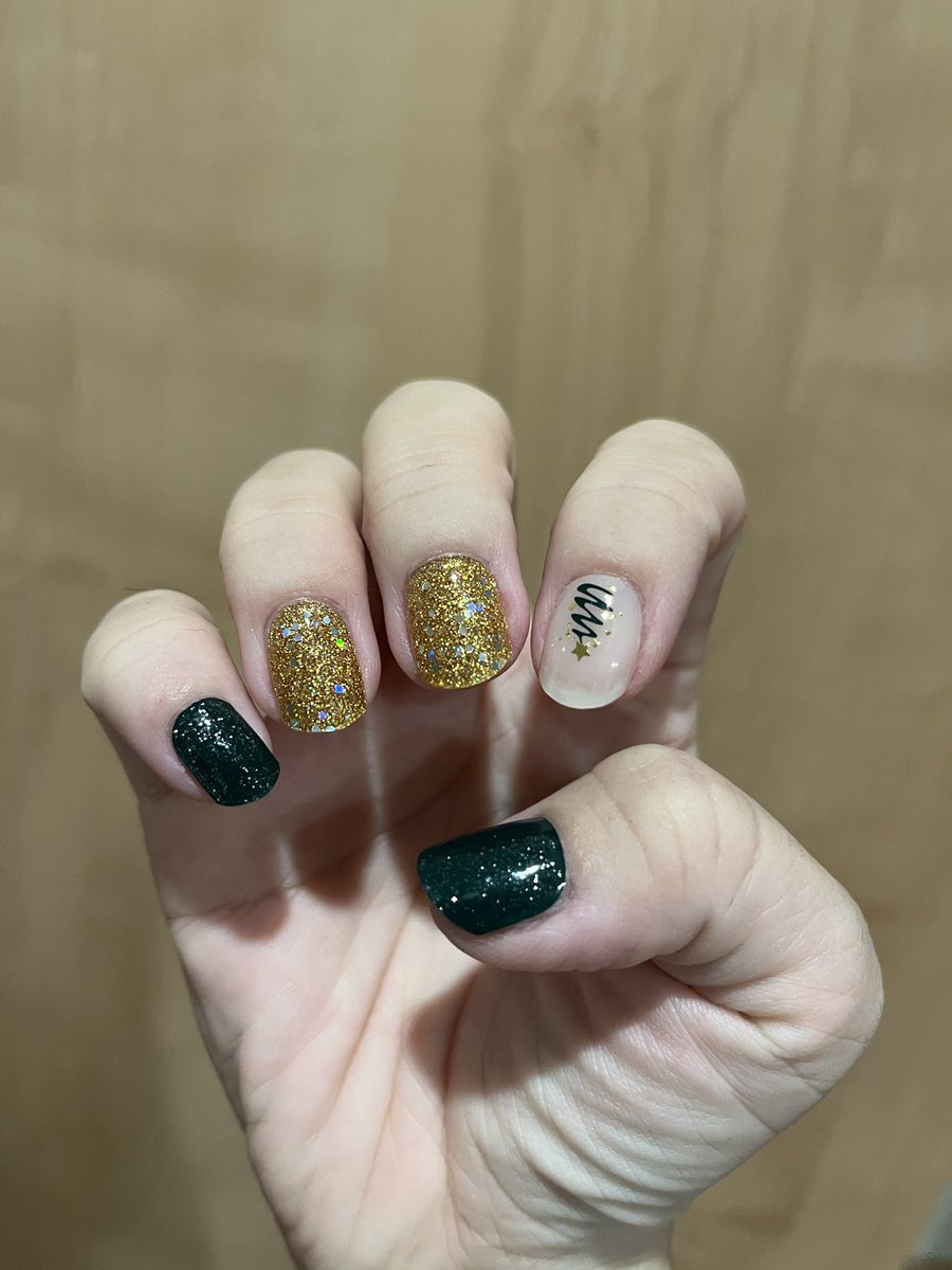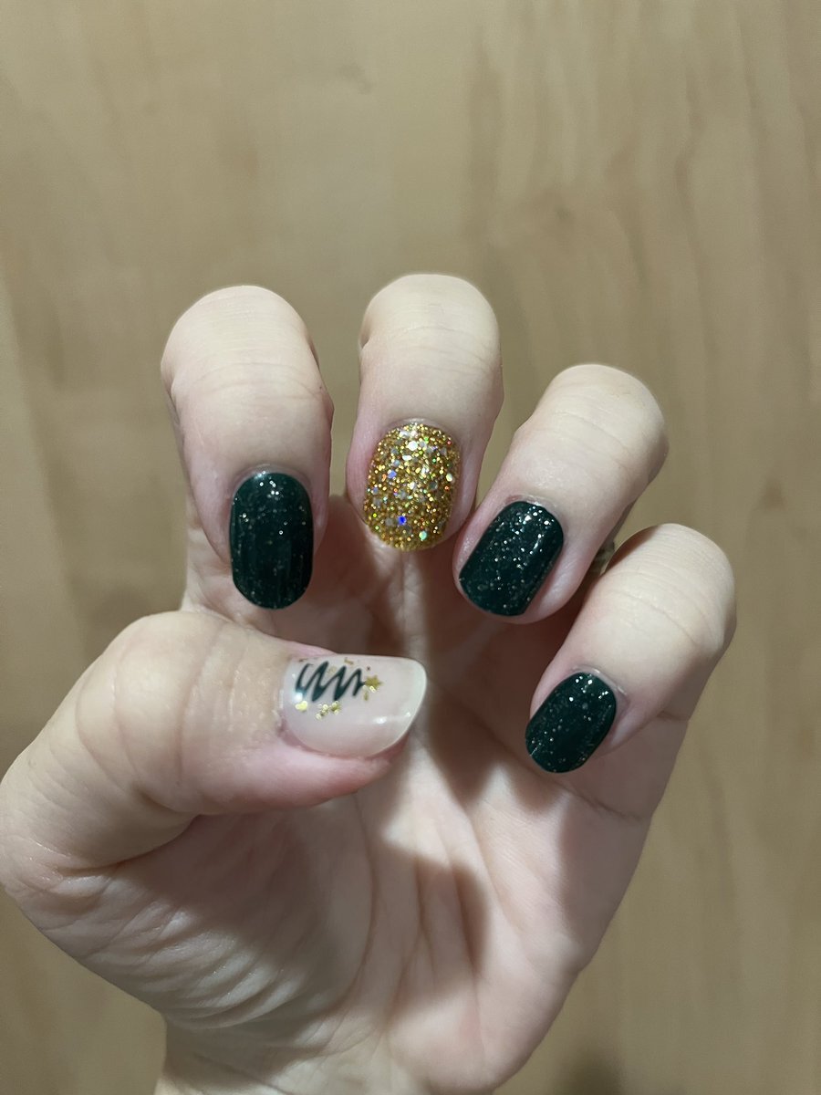 やっとクリスマスイベイメージネイル。 instagram.com/p/DSHI7JIESw7/… 手持ちのでなんかできるだろうと思ってたら、思ったより使えるのなかったw だから本当に雰囲気だけ。 濃い&蛍光寄りのグリーンで、左スウィング氏右ブギー様。 ツイードは傷とか麻袋とかのがさっとした質感にいいかなって。 #ohora pic.x.com/UWUHip0fDa