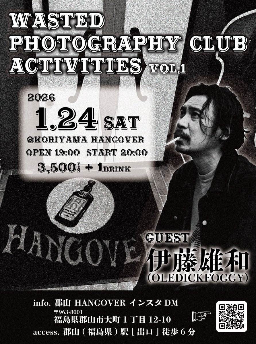 前日は郡山で! こちらの主催は @dnktb0223 『Wasted Photography Club Activities vol.1』 1/24(土) [場所]郡山HANGOVER [時間]開場:19時 開演:20時 [出演]伊藤雄和(OLEDICKFOGGY) [料金]3500円+1D 予約は郡山HANGOVERさんのインスタDMまで✉️ #OLEDICKFOGGY #伊藤雄和 #HANGOVER pic.x.com/TAVZK0TQYl