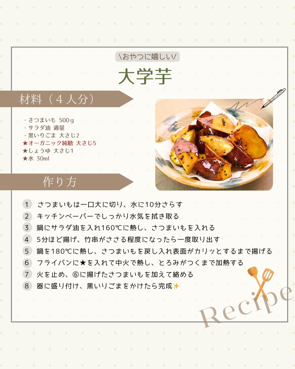 おやつに嬉しい!大学芋🍠 ホクホク、ねっとり魅惑のスイーツ🎶 秋の味覚のさつまいもを存分に味わえる大学芋は、 季節を感じる一品になること間違いなし! ▼Instagramはこちら instagram.com/p/DPxuegrAbGN/… #organic #カントリーハーヴェスト #高橋ソース #さつまいも #大学芋 #秋 pic.x.com/thEYlvmwEW