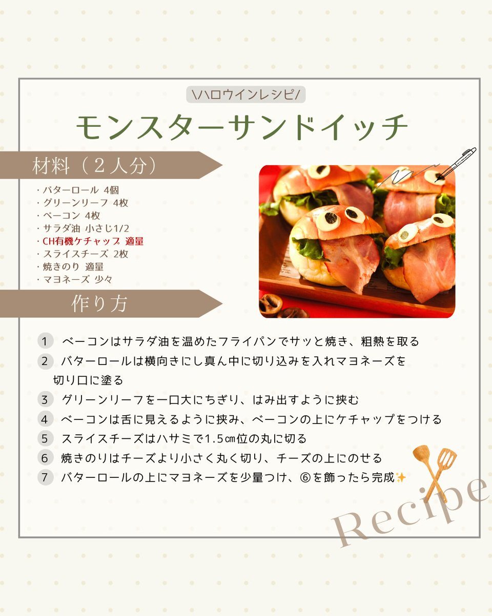 \ハロウィンレシピ/ モンスターサンドイッチ👻🥪 ハロウィン気分を盛り上げる、遊び心満載のサンドイッチ! ハロウィンパーティーの一品にいかがですか?✨ ▼Instagramはこちら instagram.com/p/DQEAOntAcV_/… #organic #カントリーハーヴェスト #高橋ソース #ハロウィン #サンドイッチ #チーズ #韓国 pic.x.com/6GmiDkov8f