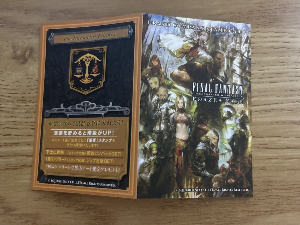 忘れてた! 急遽撮りに戻りました! ポイントカードは不滅隊にしましたよ!! 三国コンプリートで都市アート貰えるとか熱い!! このデザイン画を見て、ff14に憧れた時もあるので✨ #エオカフェ #OSAKA pic.x.com/BCtzzig2WP