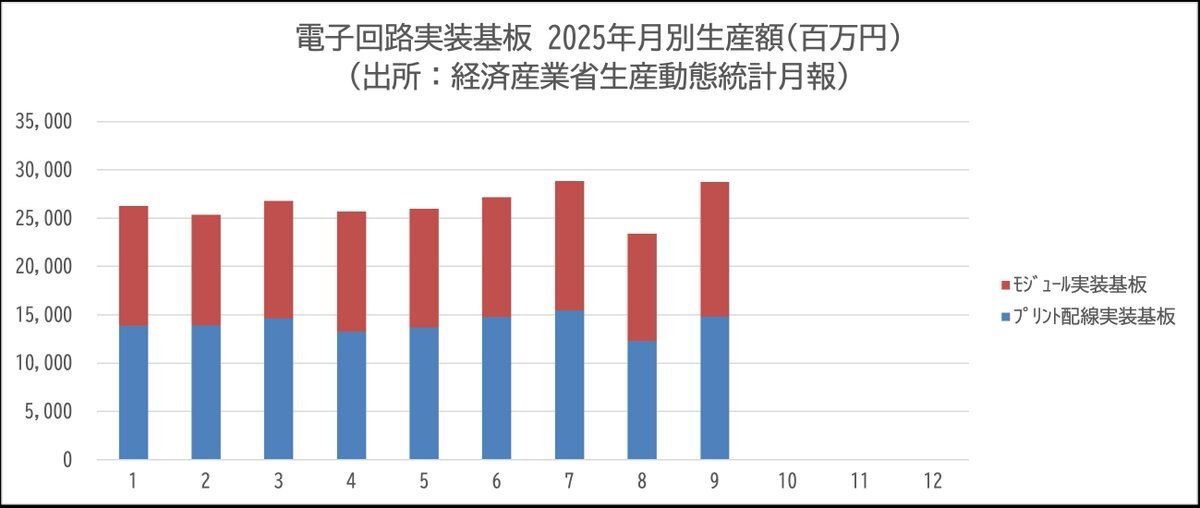 【統計情報】11月26日に日本電子回路工業会 #JPCA が電子回路基板・電子回路実装基板の生産動向資料を更新。2025年9月実績を追加。経済産業省・生産動態統計月報(11月17日公表)による。数量と金額のデータとグラフは buff.ly/1ubhFFP に(Excel, 192KB)。 #PCB #PCBA #Statistics pic.x.com/jA48TGHDpc