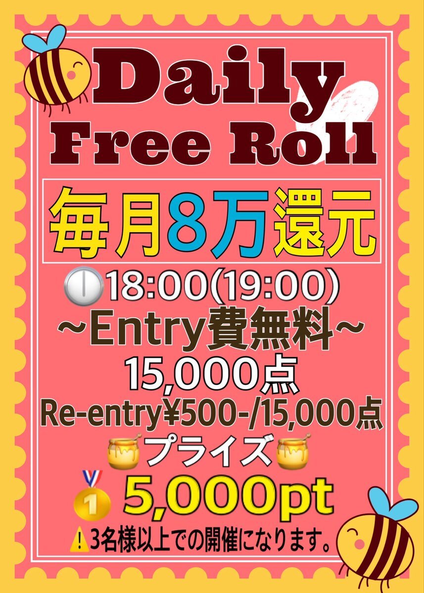 【📣木曜限定🚨男女参加費無料🚨】 ❤️参加費無料(フリーロール) 🏆優勝2,000 WEBCOIN ✔️Start Chip 150K(15万点) ♪ シングルテーブル 🗓️11月20日(木) 🕢19:30~(5ゲーム) ⏳1ゲーム約30分 ❄️フリーズアウト ♣︎ No Rebuy/No Add-on/No Re-entry 💥💥💥💥💥💥💥💥💥💥💥 💥