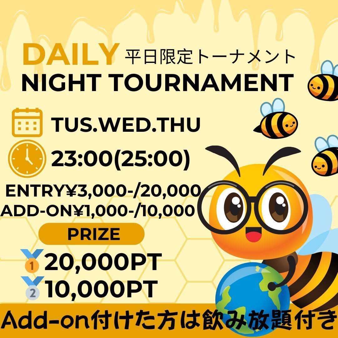 ハニフラOpen‼️ 本日は ポイントリング💰 フリーロール🆓 dailyトナメ🌙 沢山のご来店お待ちしてます🐝 #poker #BAR #土浦 pic.x.com/wWX8Ju6q8U