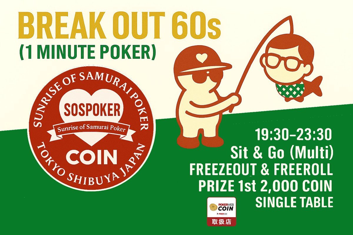 📣この後19:30〜 🔥大注目🔥フリーロール開催❗️❗️ 無料で遊べてCOIN GET💥 初来店の方大歓迎💫 渋谷SOSPOKERに是非お越しください💗 #️⃣ #sospoker #渋谷 #ポーカー #webcoin #POKER #JOPT #WSOP #フリーロール #無料 #POKERWEB x.com/infosospoker/s…