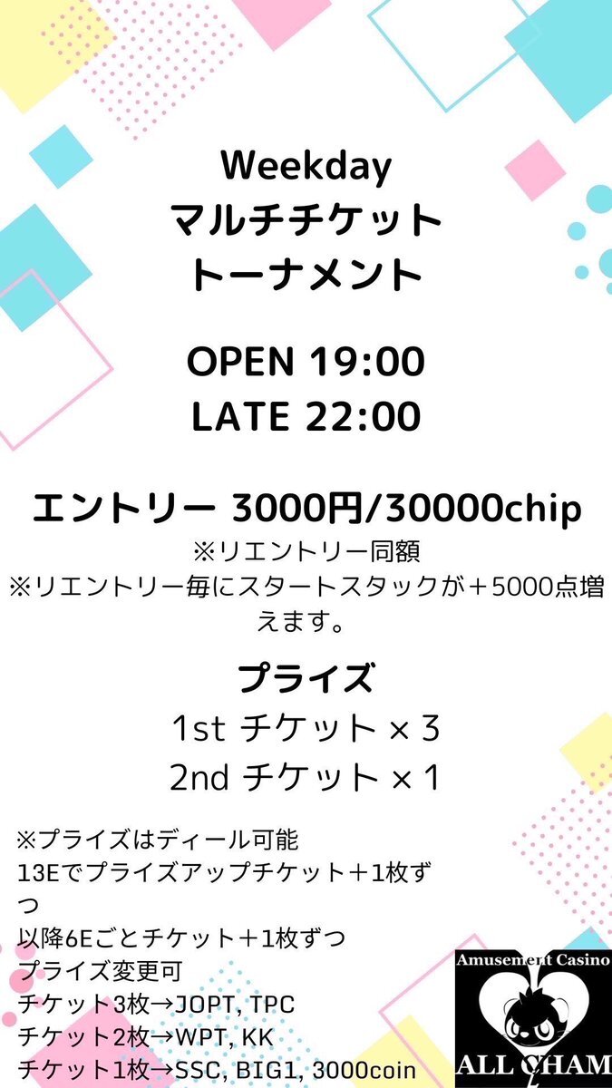 本日11/20(木)も18時ドアオープン🚪 本日は選べるWPTサテライト‼️ 19:30までの早割 そして下記ツイートのいいね、リポストで更に割引🥳 本日も深夜営業実施❤️ ウェブコインは消費税かからずに遊べますのでご来店お待ちしております🦑 #ポーカー #poker #池袋 #新宿 #板橋 #練馬 #巣鴨 #赤羽 #渋谷 x.com/Aries_sugamo/s…