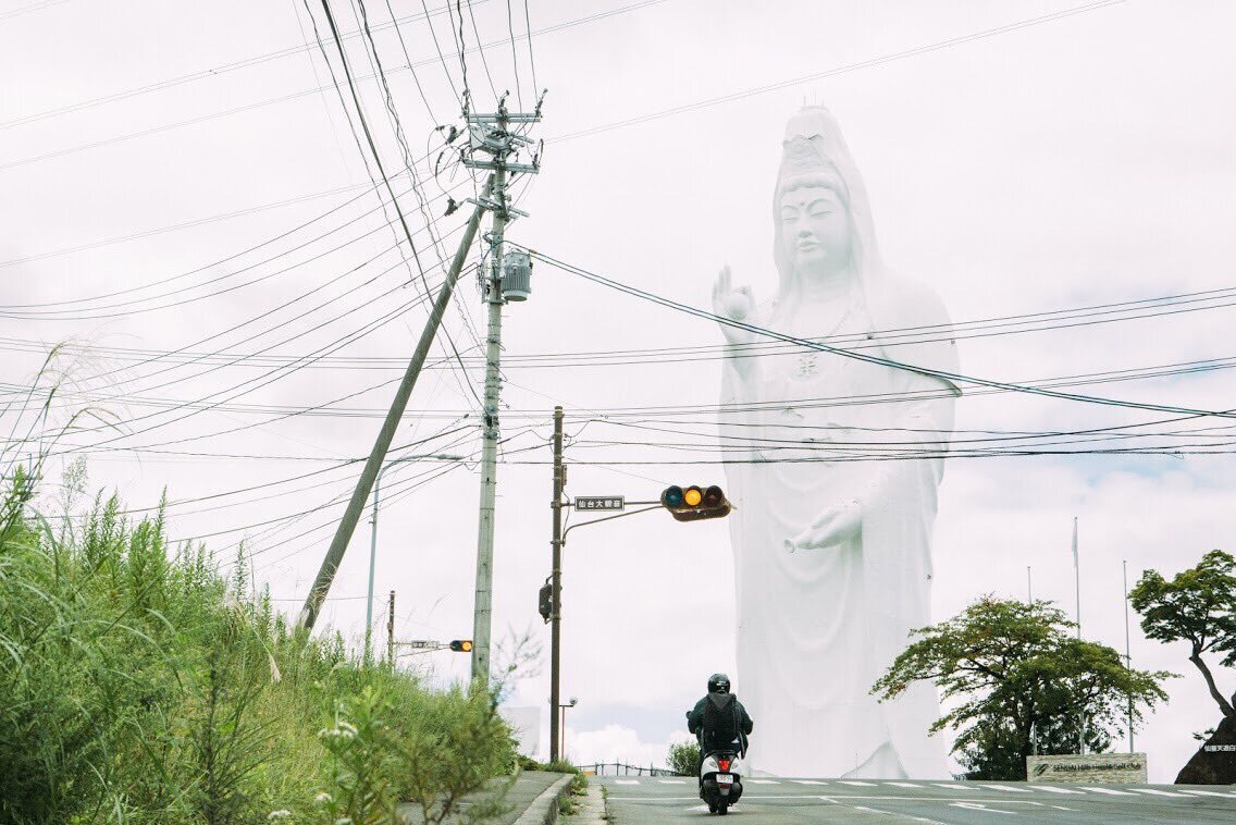 レンタルした原付バイクに飛び乗って始まった、東北みちのくの旅。東北の巨大観音様にご挨拶して旅の安全を祈り、続いて仙台のソウルフード、マーボー焼きそばの初めての食感に高揚しつつ、鳴子の老舗こけし店「老舗 高亀」へ。フルスロットル(時速30kmだけど)で北へ向かうのだ。#popeyemagazine pic.x.com/TgQkfnSvBm