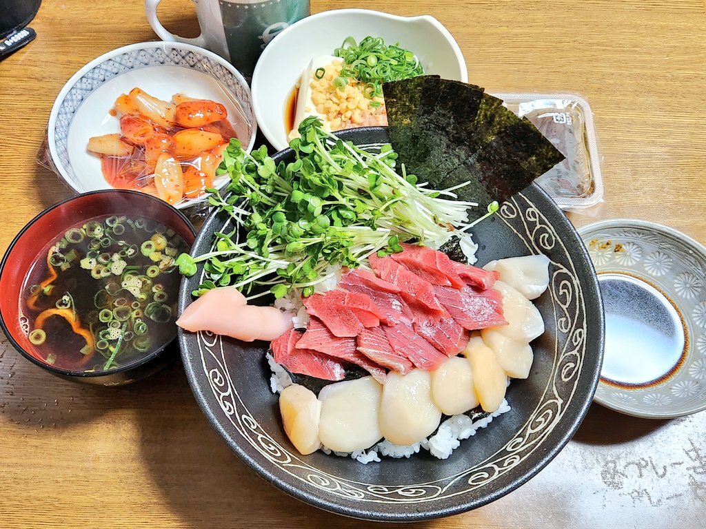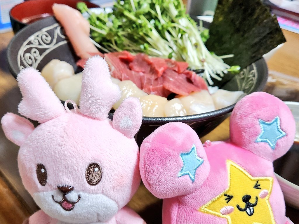 「今夜は、マグロ赤身&貝柱丼だっCHU♪」 ( ・д・)貴族メシ 「メチャ美味っCHU~♪」 ( ・д・)丼つゆは、刺身醤油と創味のつゆを1対1で割って新しい山葵を適量混ぜ込んで・・・そんな感じでOK 「しん、しょ~が~♪」 (ФωФ)貝柱たまらぬ♪ #プリチャン #prichan #キラッCHU料理部 #岩下の新生姜 pic.x.com/KiVioC4Urh