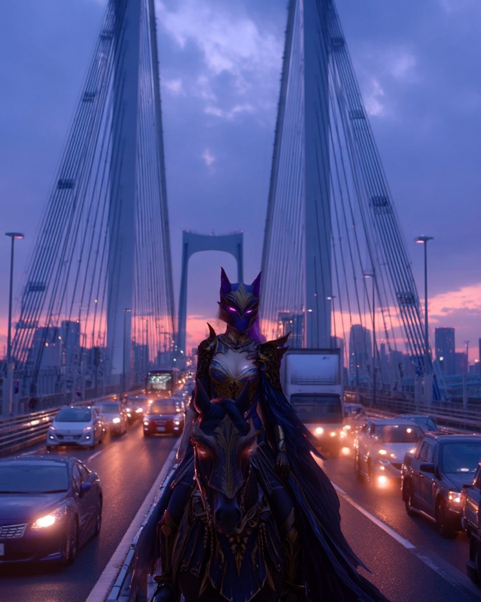ネオン橋の闇を駆る魔騎士。未来の叫びが響く。 #レインボーブリッジ #RainbowBridge pic.x.com/dcEs5SYG4L