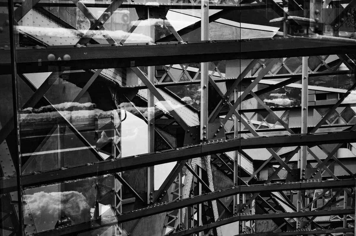構造の中に、もうひとつの構造が映り込む。 鉄とガラスの境目が曖昧になり、 建築が自分の姿を見つめ返しているようだった。 — 【inoa】 ―― モノクロ/鉄骨構造の建築をガラス越しに撮影。反射によって内部と外部が重なり、無数の線と面が交差する。 #inoa #Monochrome #Reflection pic.x.com/7APo9OQLId