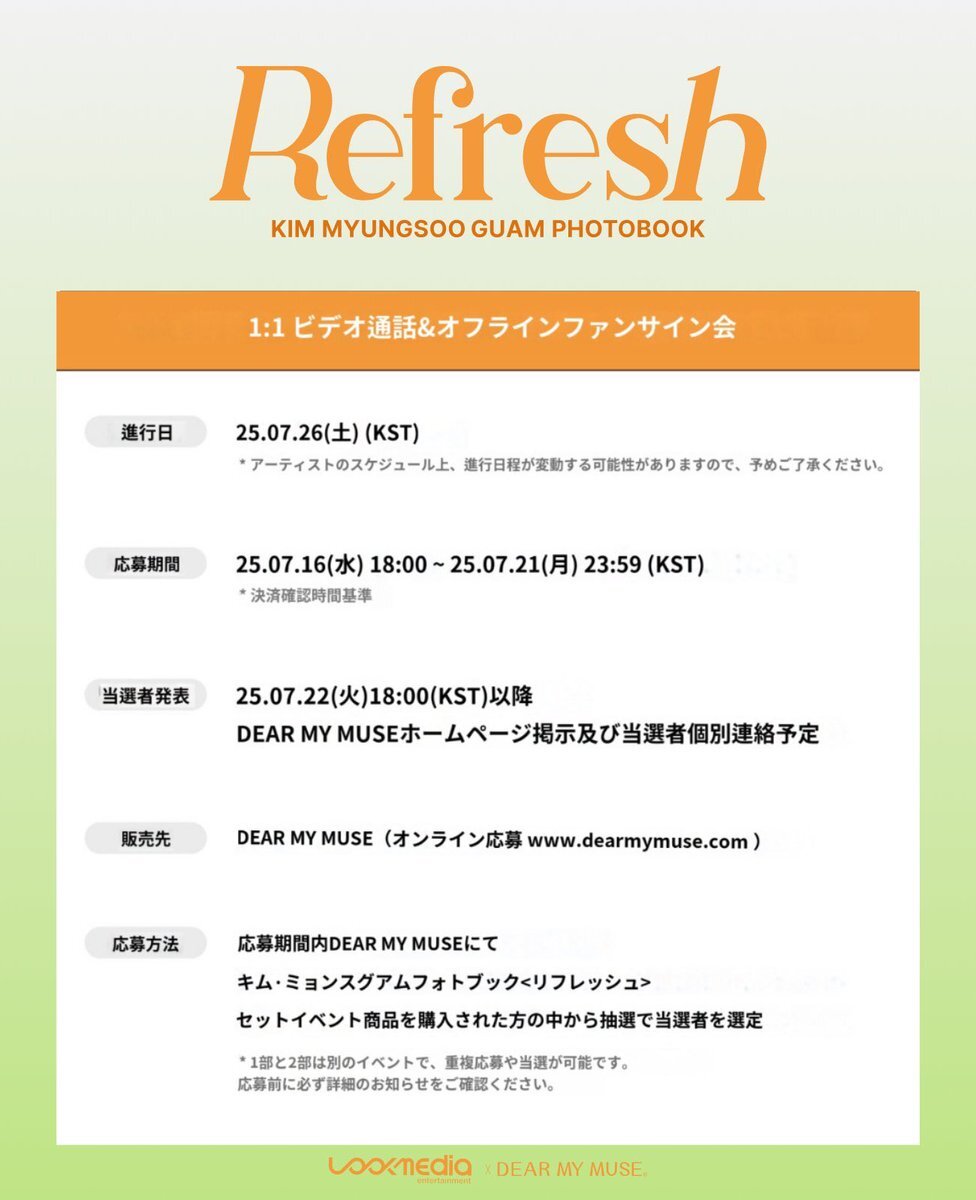 キムミョンスPHOTOBOOK [#Refresh] ビデオコール& ファンサイン会 応募期間: 07.16(水) 18:00 ~ 07.21(月) 23:59(KST) 開催: 07.26(土) 17:30 / 19:00 (KST) 🔗 ENG bit.ly/3GPBakR #ミョンス #キムミョンス #エル #kimmyungsoo #명수 #김명수 # #INFINITE pic.x.com/iWuoZlUpAI