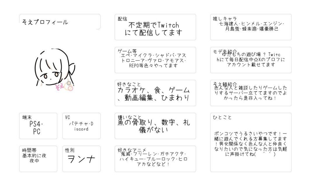 ありがたいことにフォロワー様が増えたのと もっと色んな方とゲームがしたいということで!! 自己紹介していくぅᥫᩣ ̖́-(興味ない方はスルーして笑) #Twitch #Twitch配信者さんと繋がりたい #配信者さんじゃなくても繋がりたい #APEX #Minecraft #VALORANT #REPO #OW2 #フレンド募集 pic.x.com/p1ojn6QdYO