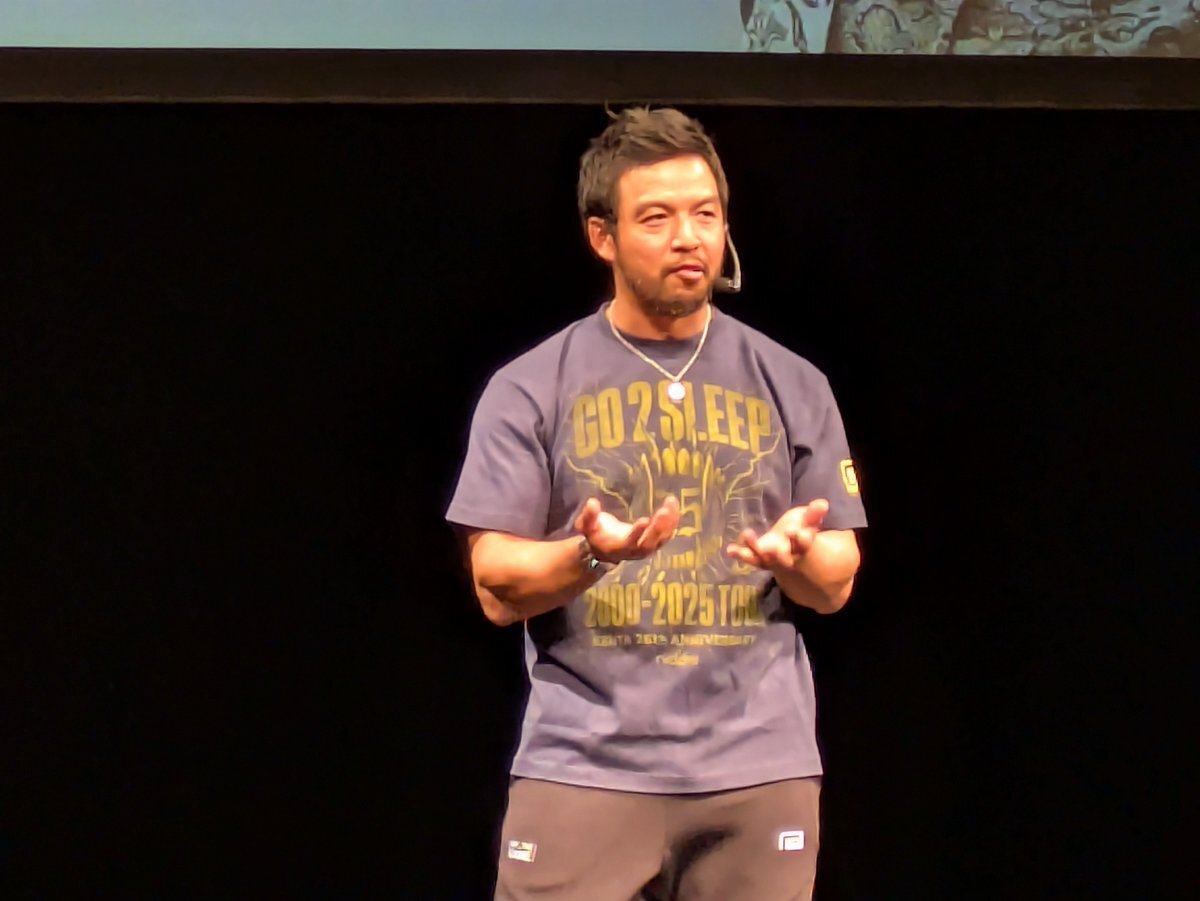 20251114 東池袋 KENTA25th ANNIVERSARY reversalのスエットパンツに限定Tシャツ姿のKENTAビジュ良過ぎだし、ワイヤレスマイク姿がスティーブジョブズ感強めだし、何より独特の間合いに引き込まれるトーク術が最高最強! 必ずまた開催して欲しい! #kentag2s #noah  #reversal pic.x.com/RP52NPSDWI