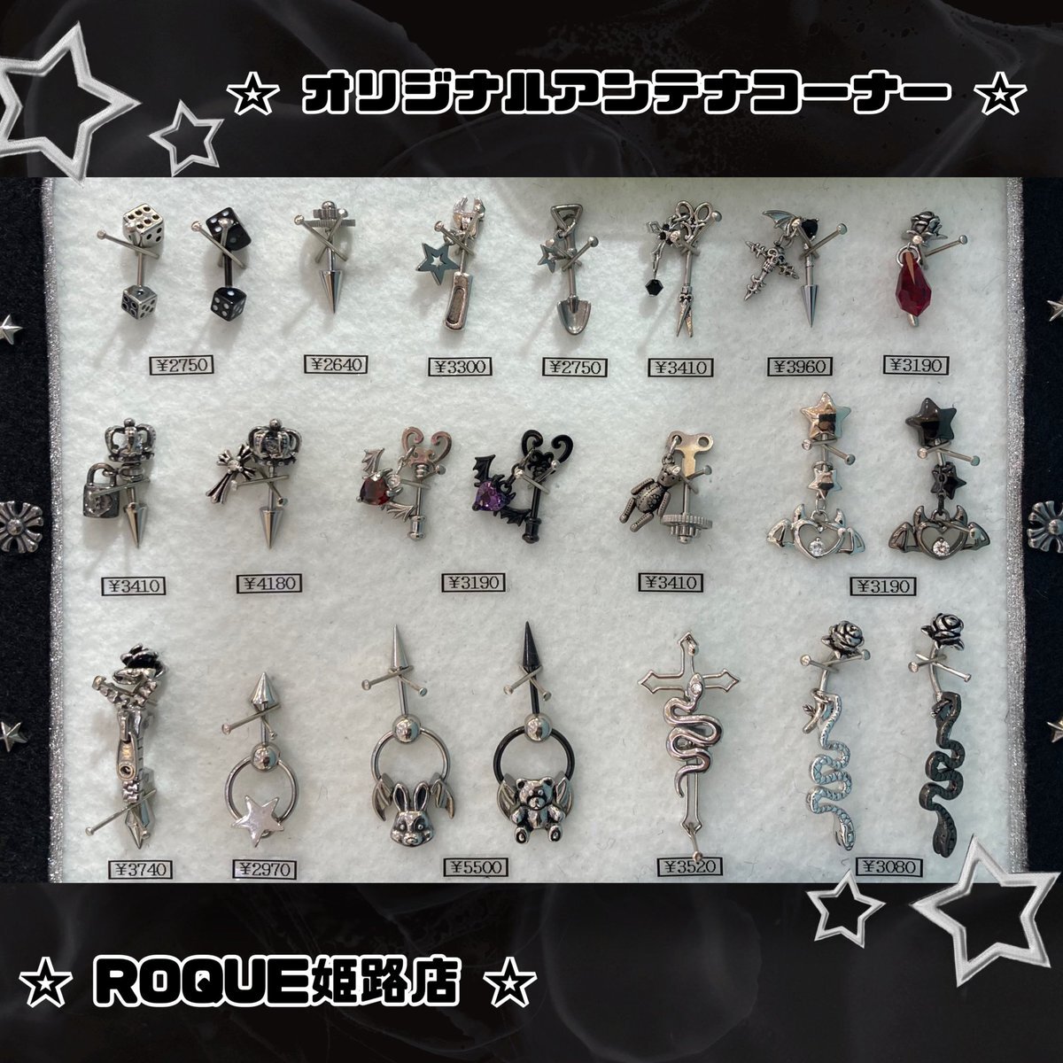 こんにちは! 姫路店のオリジナルアンテナコーナーのご紹介です♪ カッコいいデザインも豊富にございます! メンズの方にもオススメ✨ #ROQUE #ロキ #ROQUE姫路店 #口キ姫路店 #ボディピアス #ピアス #耳たぶ #ロブ #ヘリックス #トラガス #コンク #アンテナ #オリジナル #アンテナヘリックス pic.x.com/KRKELjW51t