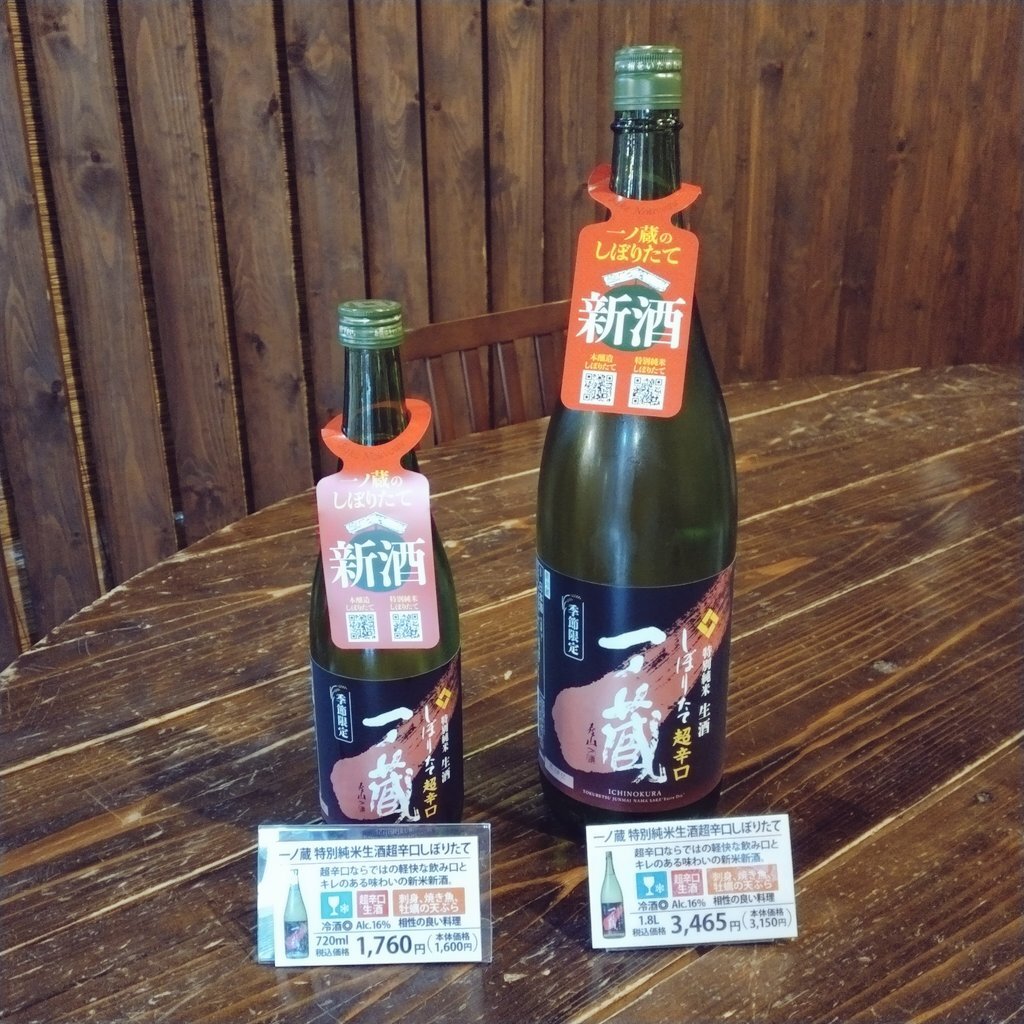 一ノ蔵特別純米生酒超辛口しぼりたて、本日新発売!定番商品の「特別純米酒超辛口」の生酒タイプで、軽快な飲み口とキレが特徴です✴是非お試しください!1.8l税込3465円 720ml税込1760円 #一ノ蔵 #しぼりたて #日本酒 #大崎市松山 #sake pic.x.com/Dslb9UxPis