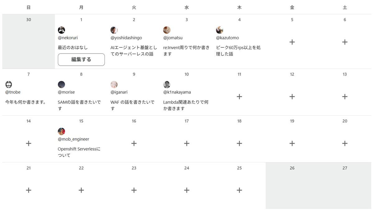 Serverless Advent Calendar 2025、 ちょこちょこ予約いれてもらっていて𝑩𝑰𝑮 𝑳𝑶𝑽𝑬! 引き続き参加お待ちしています! qiita.com/advent-calenda… #serverlessjp #serverless pic.x.com/ZoNjpOifhI