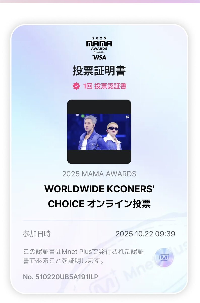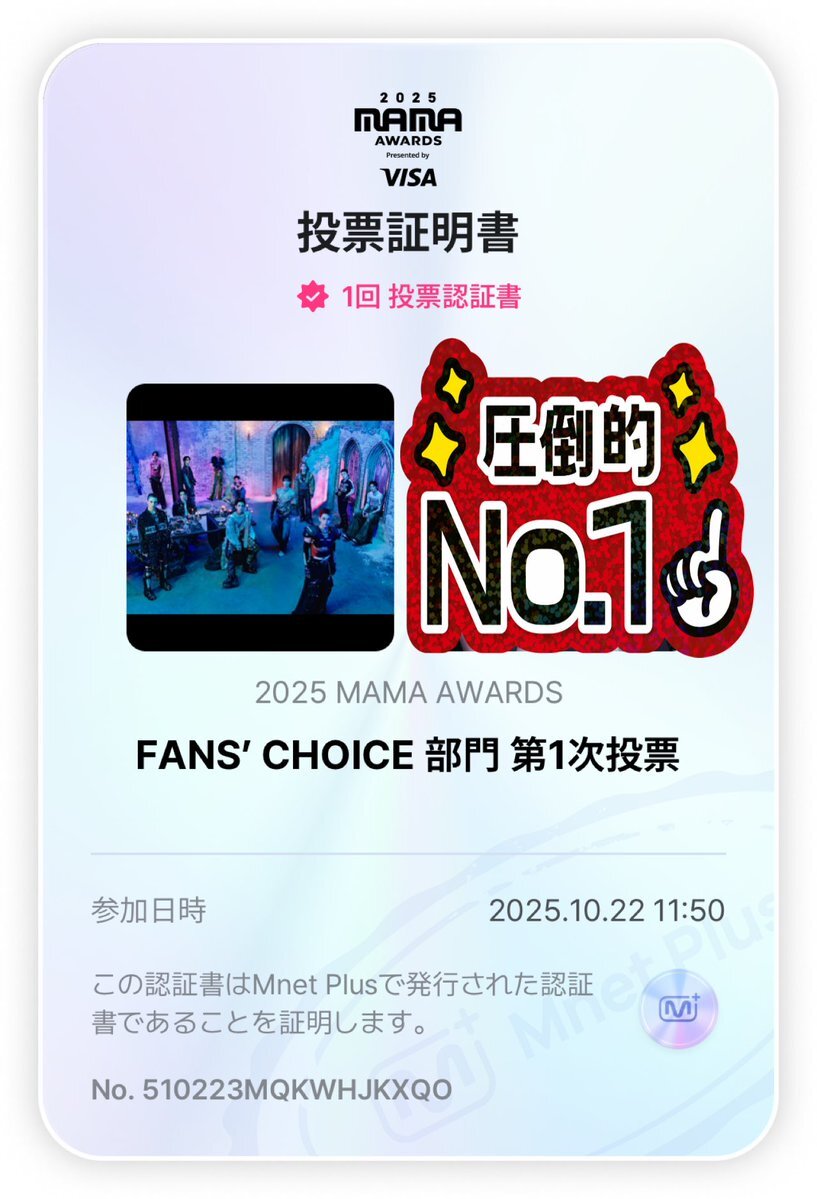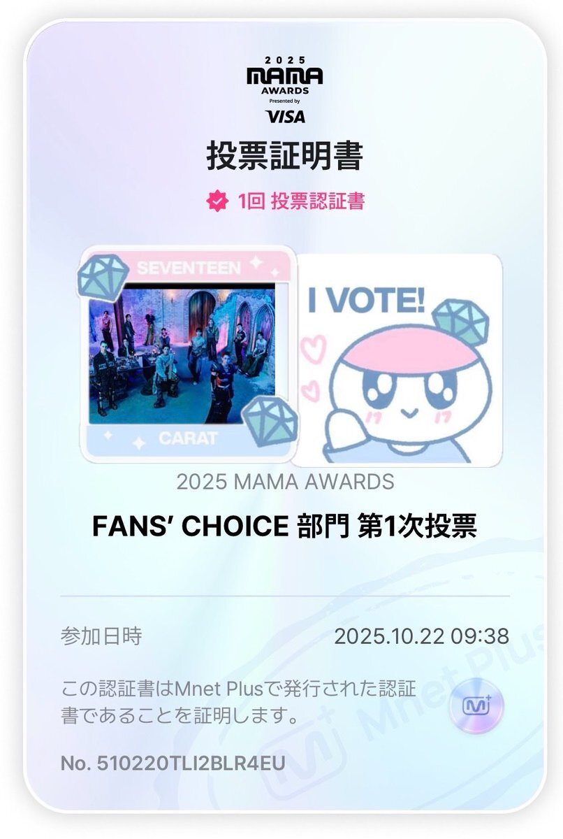 投票完了✨(`・ω・´)ゝ #2025MAMAVOTE #SEVENTEEN pic.x.com/Jd5nuuLwBJ
